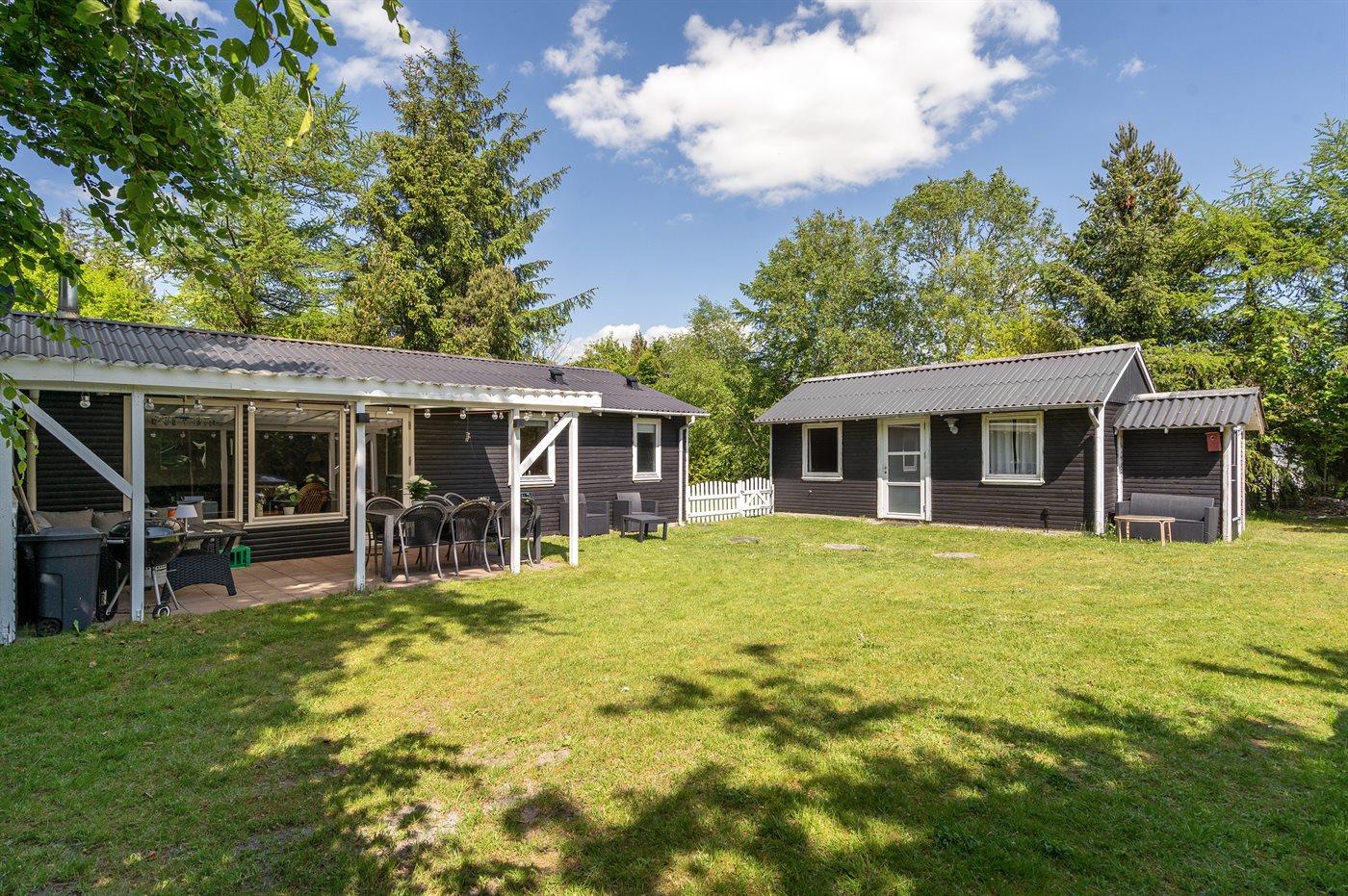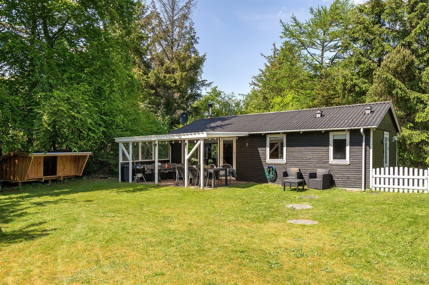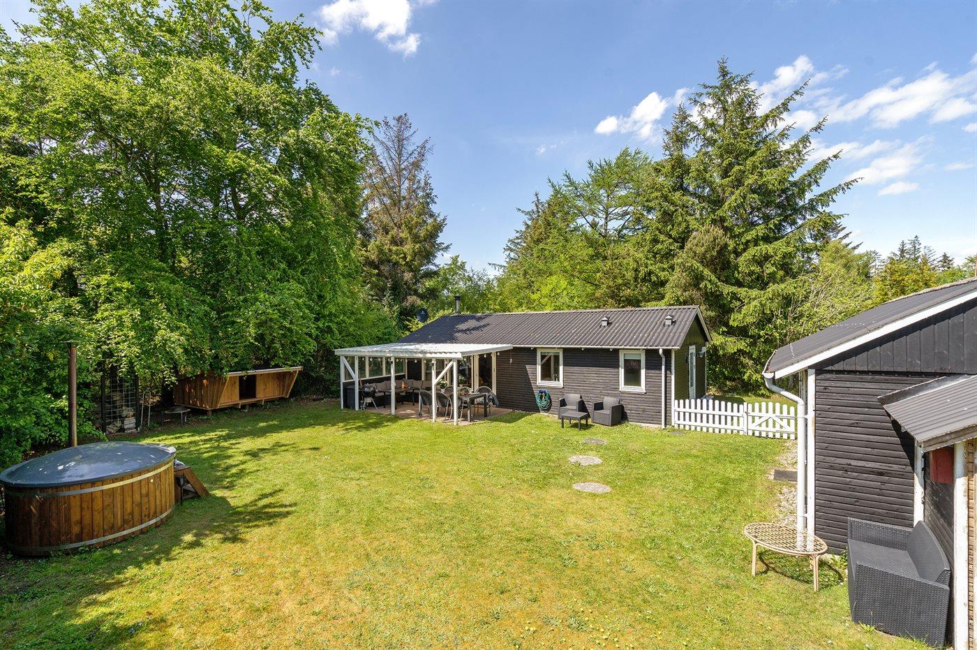 På en dejlig grund for enden af en blind vej ligger dette hyggelige sommerhus, hvortil der bl.a. hører et 7-pers. vildmarksbad, som kan benyttes hele året.