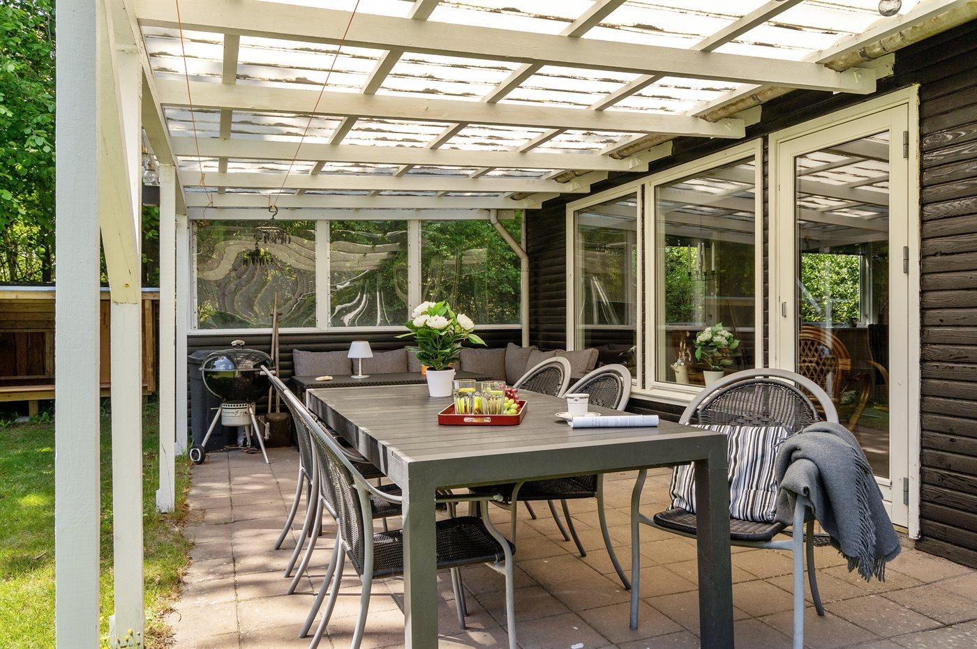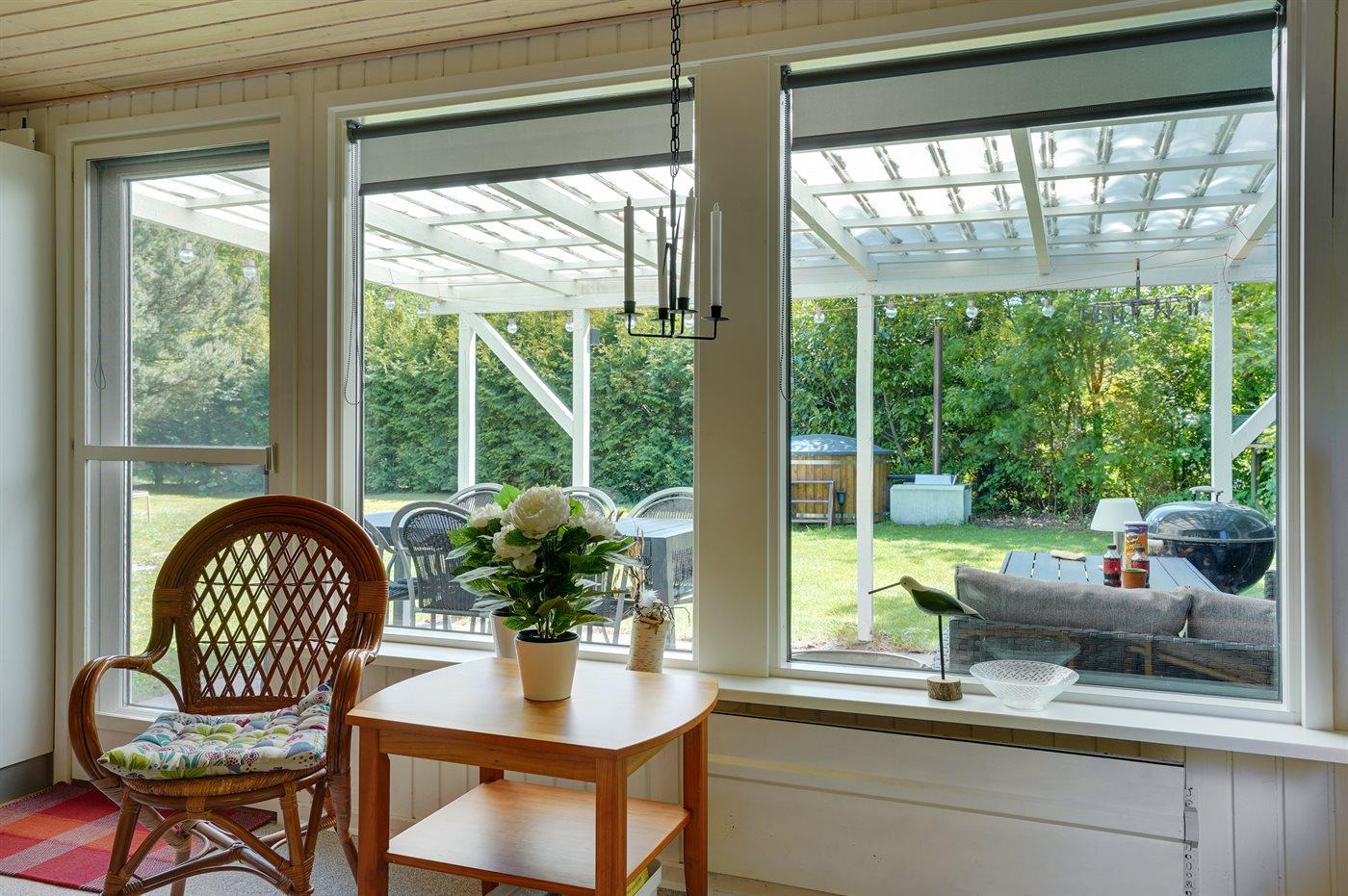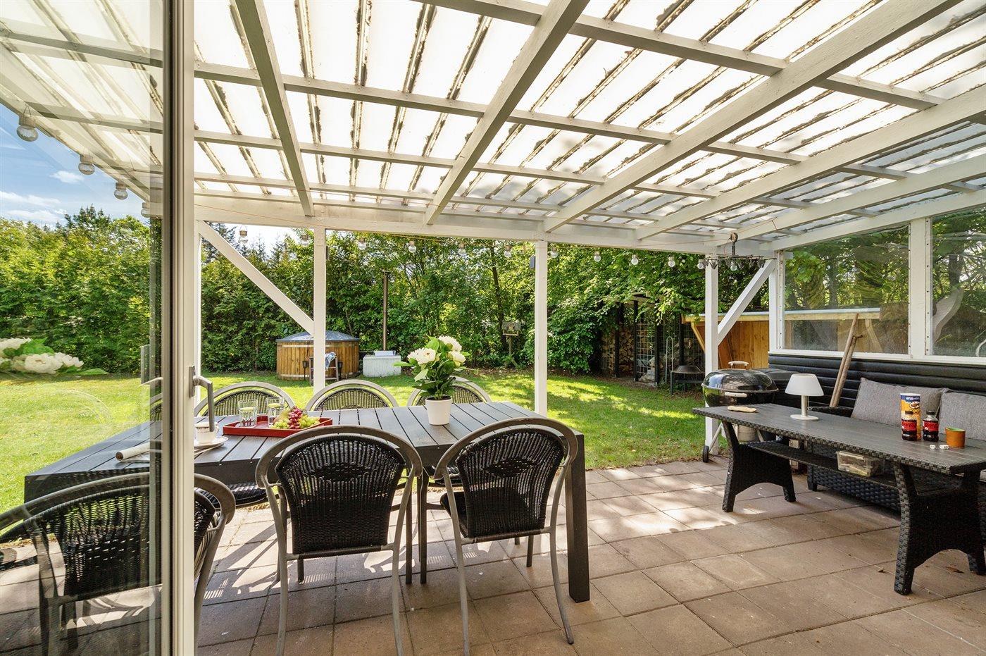 På en dejlig grund for enden af en blind vej ligger dette hyggelige sommerhus, hvortil der bl.a. hører et 7-pers. vildmarksbad, som kan benyttes hele året.