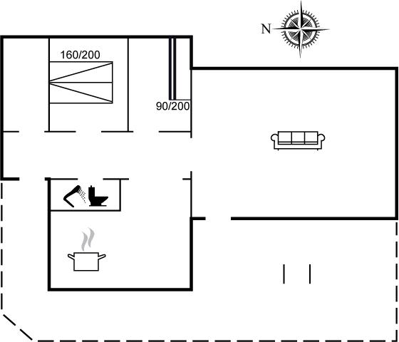 Der er i alt 2 soveværelser. Sovepladserne fordeler sig på: 2 sovepladser i dobbeltseng. 2 sovepladser i køjeseng.