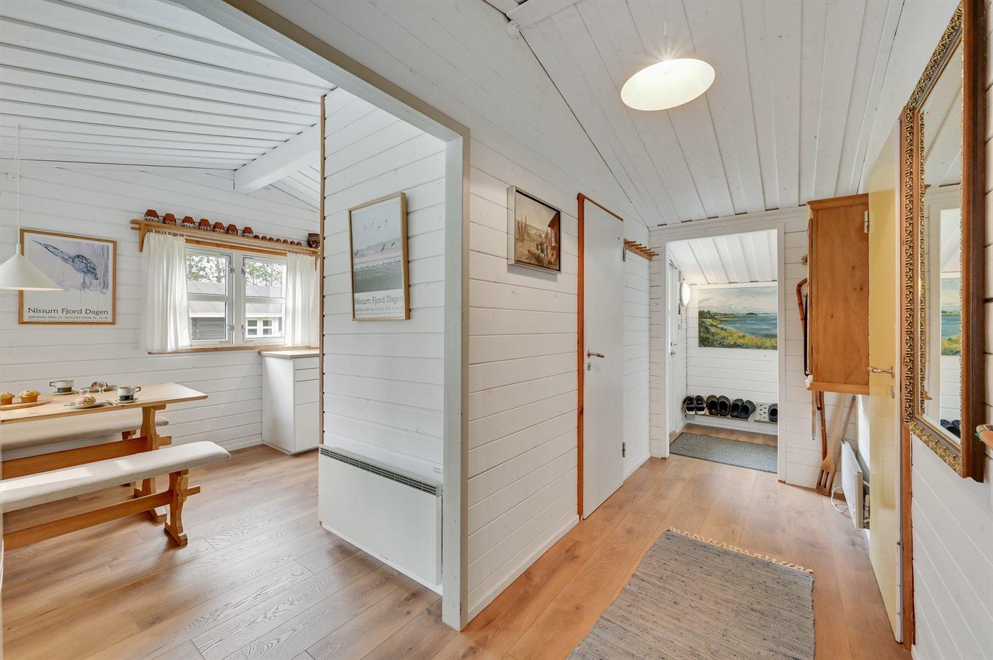 Dette pæne og hyggeligt indrettede sommerhus ligger i et sommerhusområde meget tæt på fjorden. Til huset hører dejlige terrasser og på grunden er der plads til boldspil og leg.