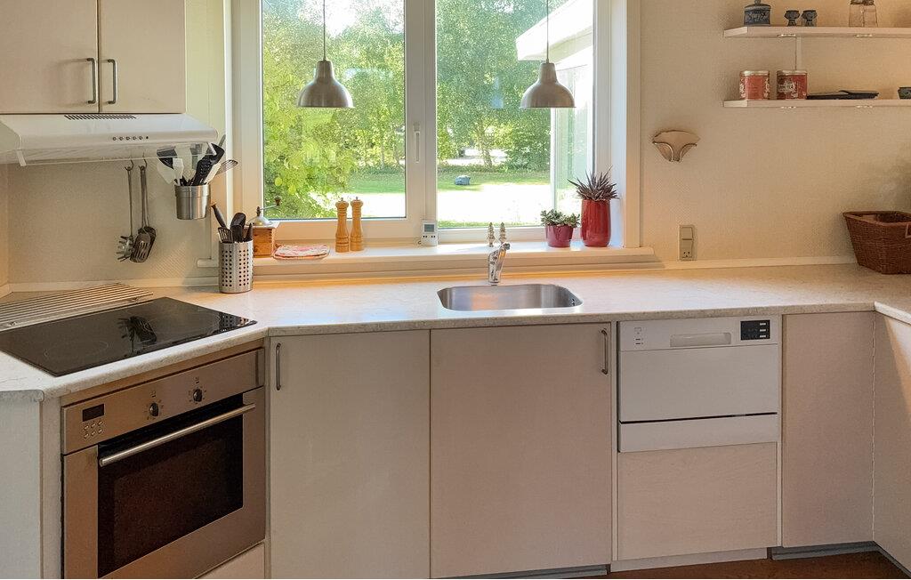 Træd ind i den hyggelige opholdsstue og sæt jer godt til rette i den behagelige sofa eller i lænestolene ved vinduet. Brug spisebordet til fælles måltider eller sociale spilleaftener. Den indbydende udestue byder jer velkommen med masser af lys og en dejlig udsigt til haven. Tilbered lækre retter i det praktiske køkken og nyd husets afslappede atmosfære.