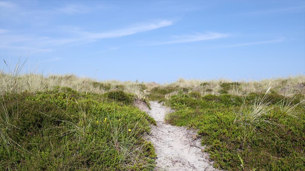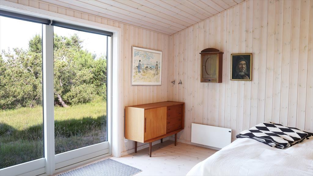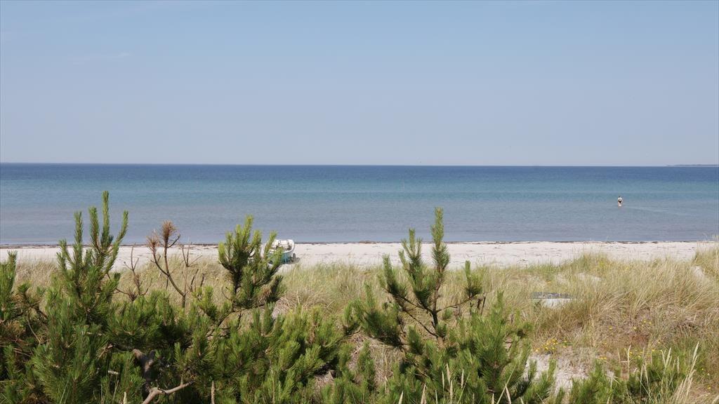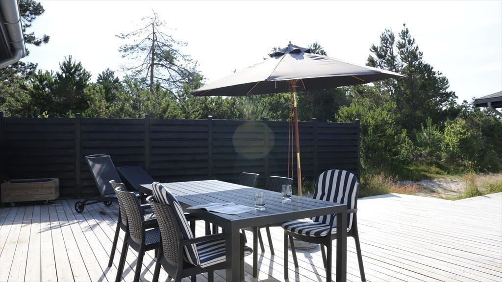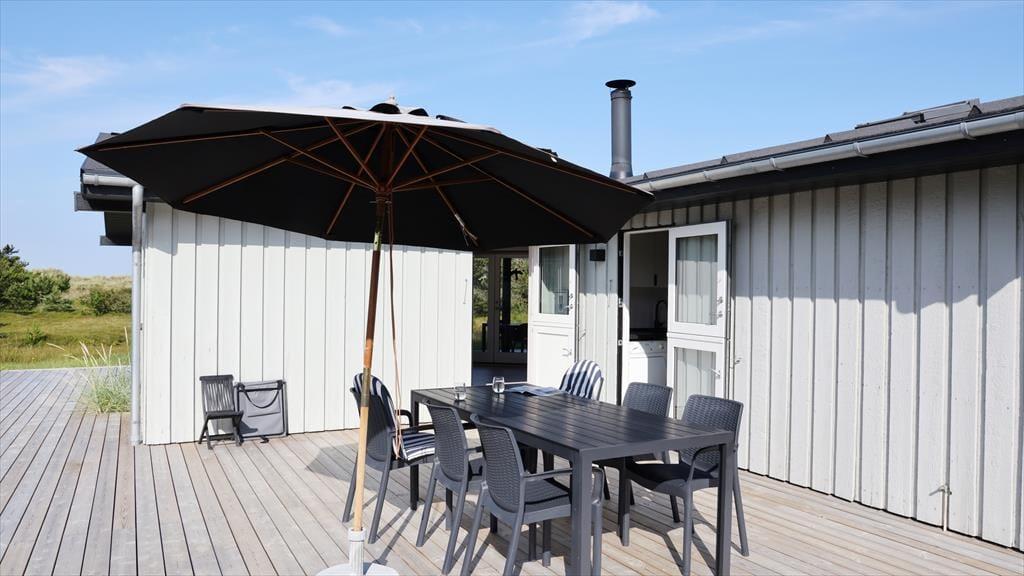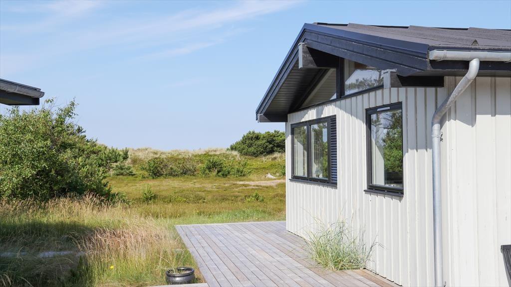 Sommerhuset ligger med adgang direkte til stranden, du skal blot bevæge dig op over sandklitten, så er du på stranden. Her kan I bade fra morgen til aften. Dine børn kan samle små muslingeskaller, bygge deres eget sandslot, eller fiske rejer, mens du lytter til havet. På den skønne terrasse, kan du ligge og nyde solen imens du lytter til fuglenes sang eller være heldig, at se et rådyr løbe forbi. På grunden kan du samtidig opleve den mest fantastiske lyng og sandklitterne, der skærmer mod havet. Selvom du befinder dig ved en af de bedste sandstrande i Danmark, så er du heldig at bo lige ud for den rolige del af stranden.