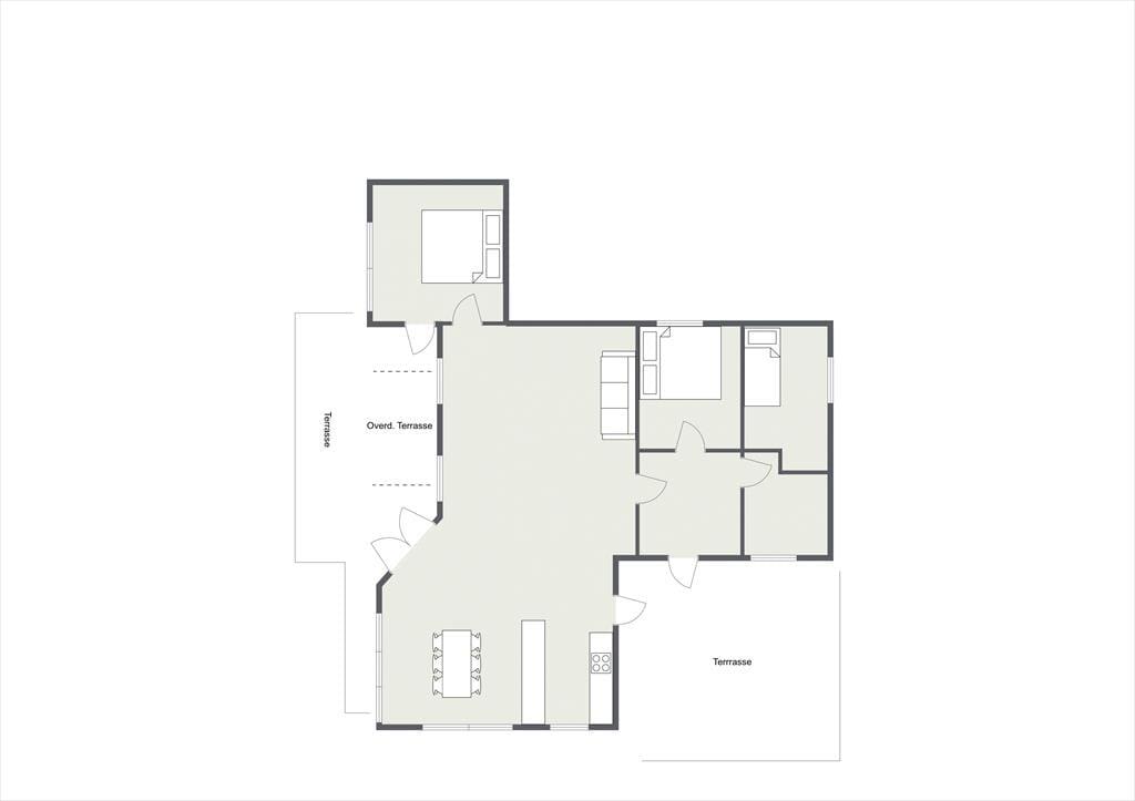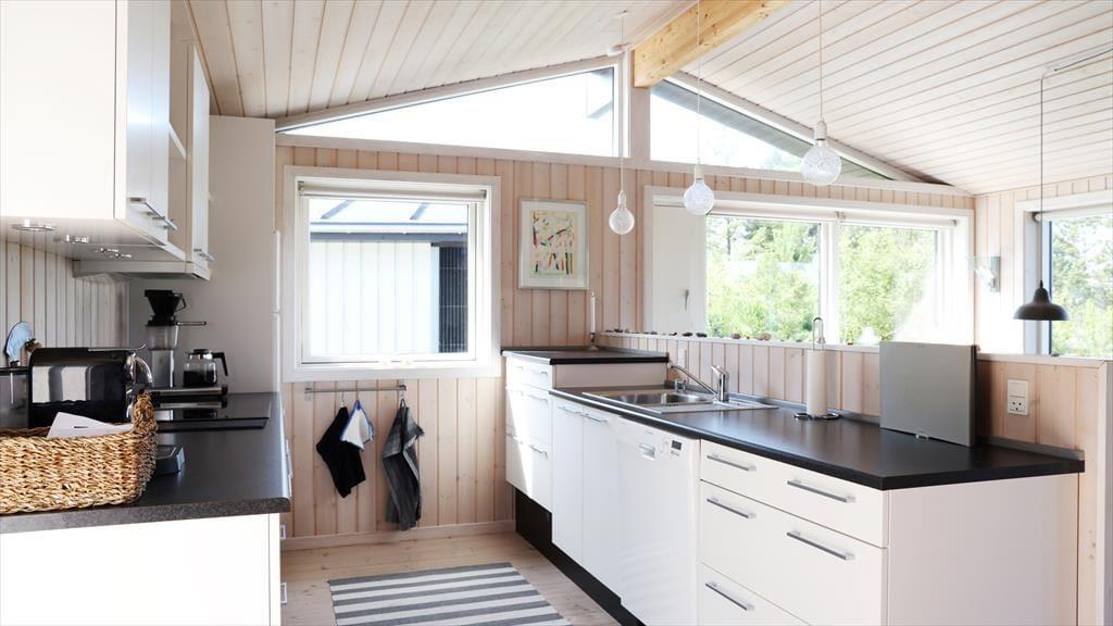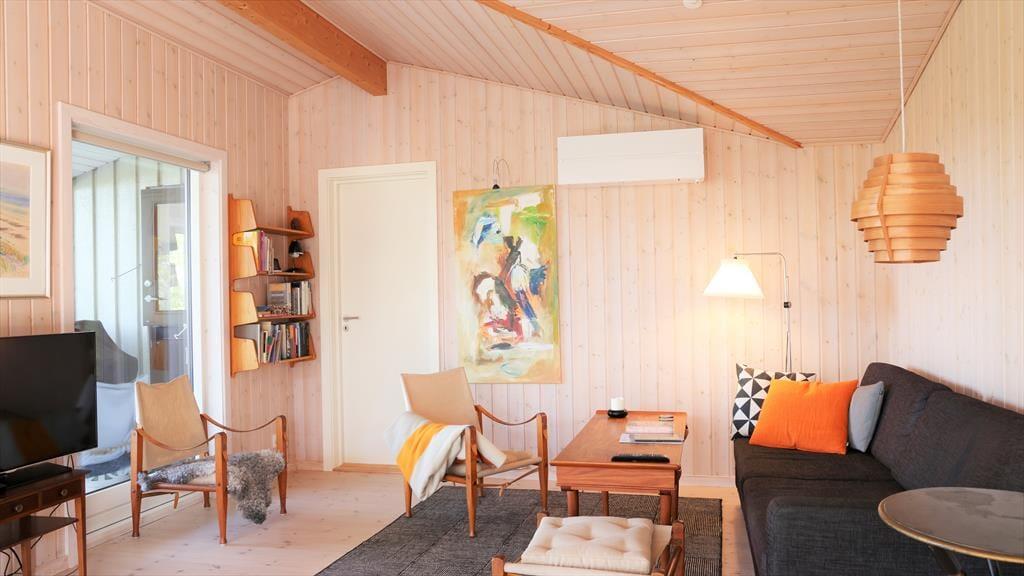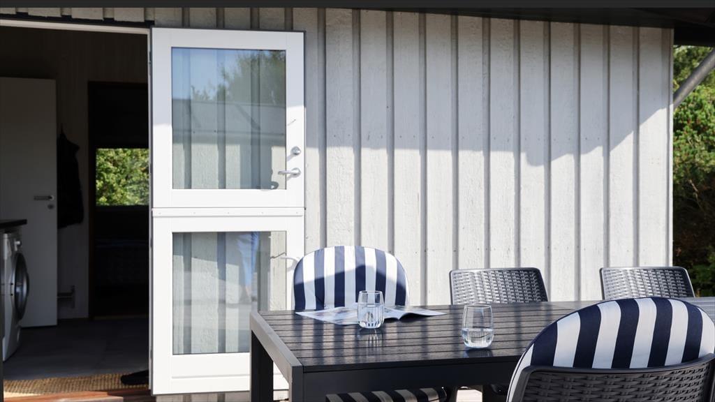 I sommerhuset, vil du med det samme få følelsen af, at være velkommen, alt fremstår lyst, lækkert og særdeles indbydende. Du vil hurtigt få skuldrene ned og mærke, at det endelig er tid til ferie. I den skønne stue, der er placeret i forbindelse med det åbne køkken, kan I samles omkring spisebordet til et brætspil eller en god frokost. Fra terrassen kan du opleve den mest fantastiske solnedgang, mens I deler en flaske vin, efter at børnene er lagt i seng.