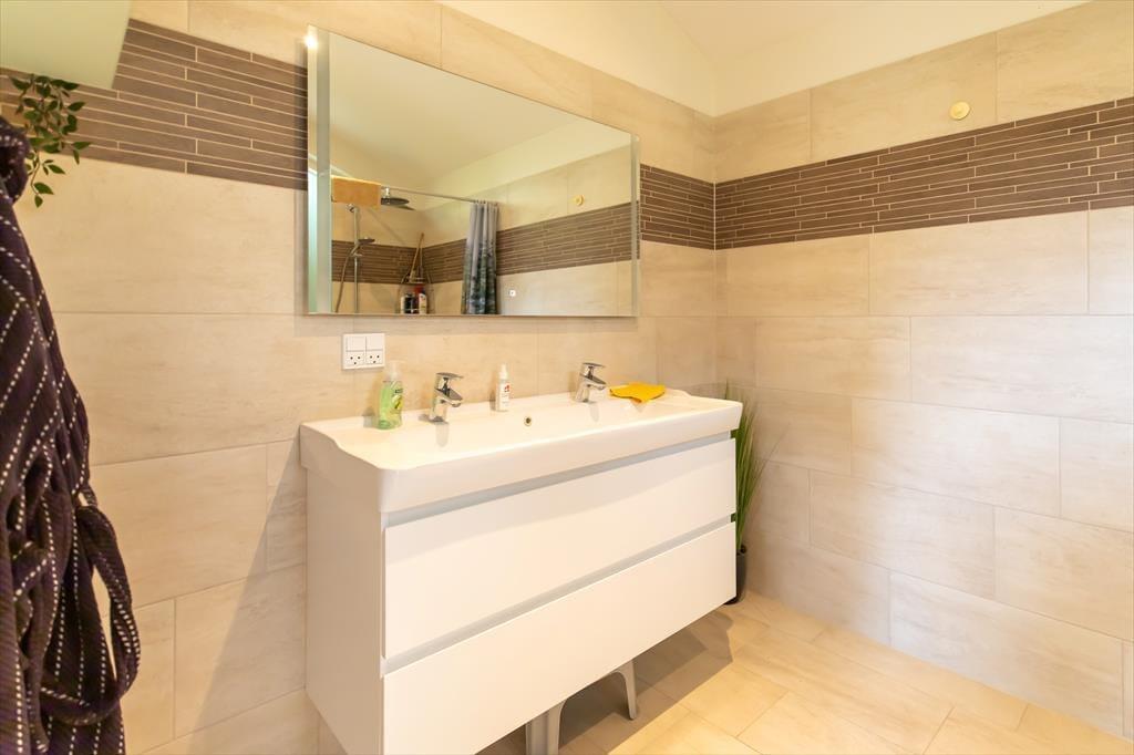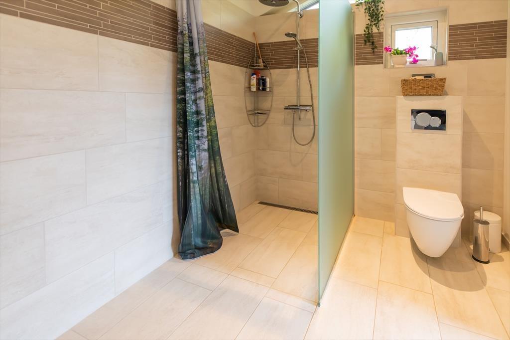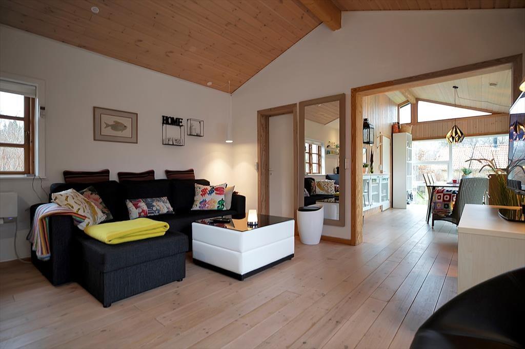 Husets dagligstue ligger midt i huset mellem spisestuen og det åbne køkken, så mens nogle i familien slapper af i sofaen med chaiselong eller dækker bord, kan du tænde indbygningsovnen og gøre klar til aftenens steg. Der er også mulighed for at sætte sig og få en snak ved barstolene ved køkkendisken under forberedelserne. Ved spisebordet kan I kigge ud i haven fra de store vinduespartier og eventuelt åbne døren ud til terrassen.