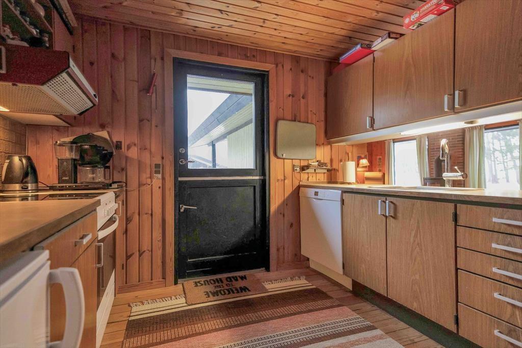 I sommerhuset, vil du med det samme få følelsen af at være velkommen. Du vil hurtigt få skuldrene ned og mærke, at det endelig er tid til ferie. I den hyggelige stue, der er placeret i forbindelse med det åbne køkken, kan I samles omkring spisebordet til et brætspil eller en god frokost. Fra terrassen, der er opdelt i en åben og en overdækket afdeling, kan du opleve den fantastiske natur, eller bare nyde solen fra morgen til aften.