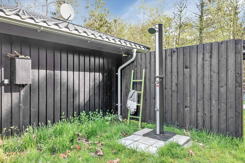 Udendørs bruserOpvarmes med solceller, så temp. afhænger af vejret