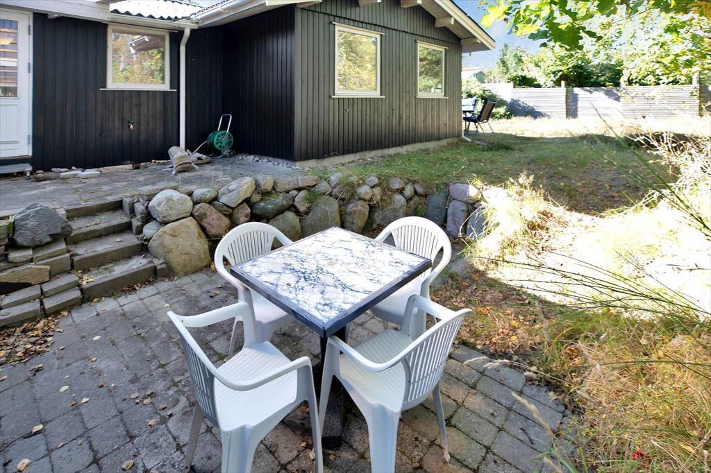 Sommerhuset er beliggende på den skønneste naturgrund med smukke træer og buske, som giver en god fornemmelse af at holde ferie ude i naturen. Der er flere gode terrassearealer hvor der kan findes både læ og sol hele dagen. På den store sydvendte terrasse kan alle samles og nyde en god frokost rundt om havebordet, og aftensolen kan nydes på den lille vestvendte med en god kop kaffe. Skal der hygges kan der tændes op i det lille bålfad og bages snobrød eller blot nyde flammerne og bålets knitren.