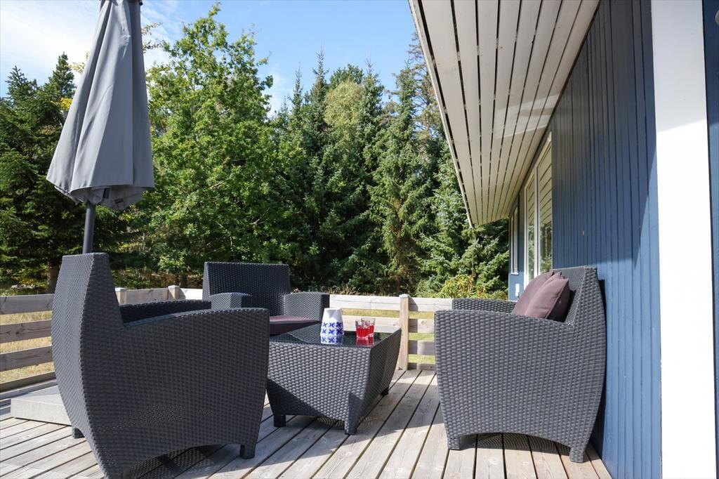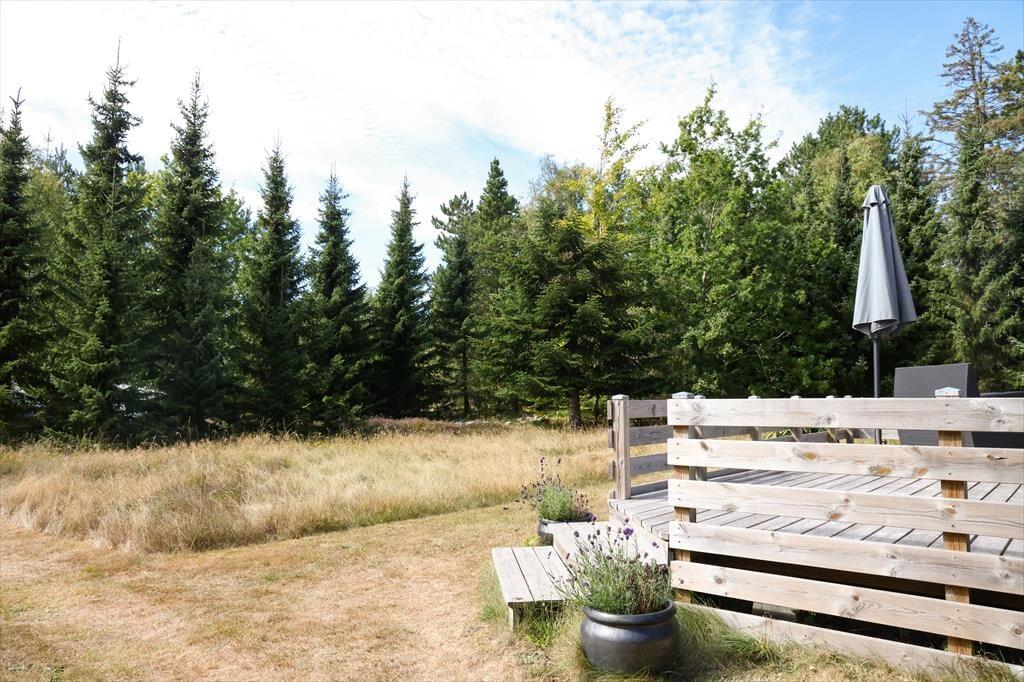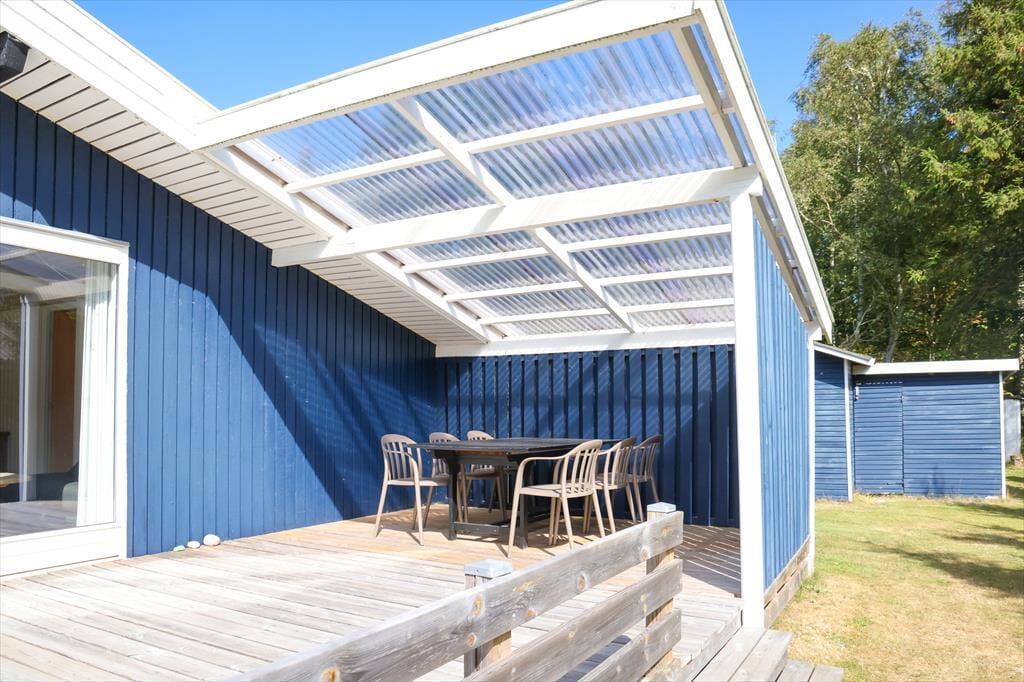 Sommerhuset er beliggende på en skøn grund omkranset af træer og buske så du kan sidde i naturskønne omgivelser og nyde din frokost, og altid finde en skyggeplads hvis solen skulle blive for skarp. Der er tidlig morgensol på terrassen hvorfra der er udgang fra køkkenet og på den store træterrasse er der sol fra middag til aften. Står dagen på naturoplevelse, så er der kun en kort gåtur til Ellinge skov hvor der er stier rundt i skoven, ligeså er det også en kort gåtur til Korevlerne der byder på masser af dyreliv inden du for enden ad Korevlerne når ud til en skøn sandstrand.