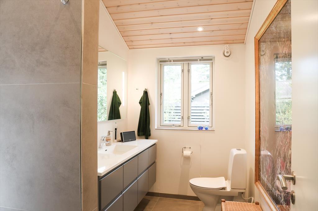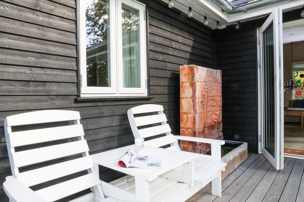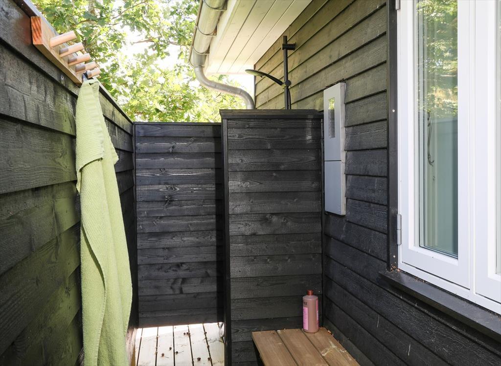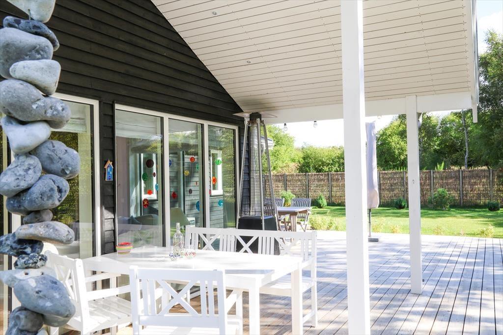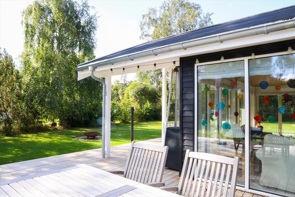 Har du været nede og bade på den gode sandstrand, så kan du nemt skylle sandet af når du kommer tilbage til sommerhuset, der er nemlig udendørs bruser med både koldt og varmt vand. Udendørs kan sommerhusets store terrassearealer nydes fra morgen til aften, her er god plads til at alle kan sidde ude og nyde en god frokost, eller bare ligge og slikke sol. Når aftenduggen falder, kan du sidde og hygge dig hele aftenen på den store overdækkede terrasse.