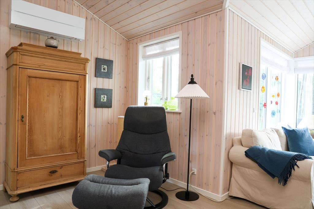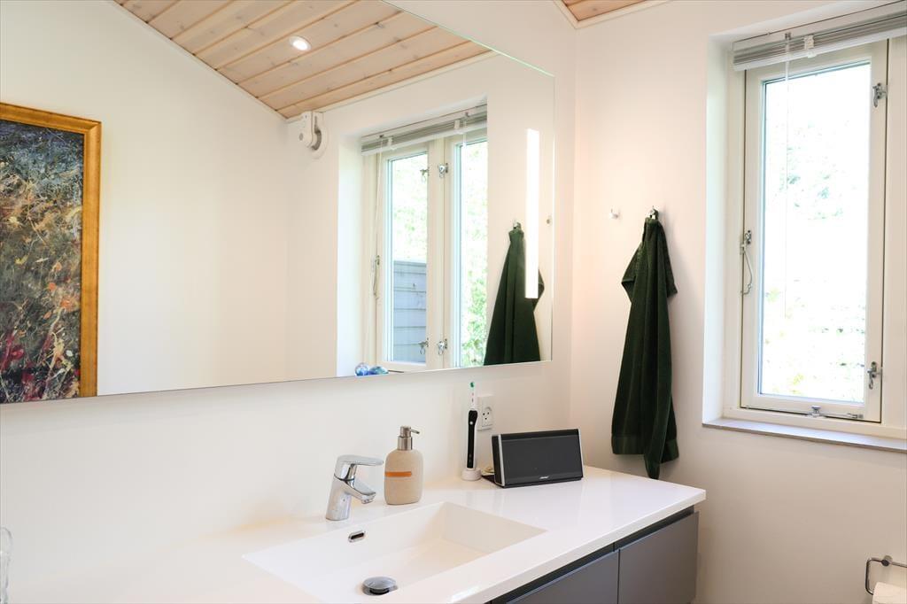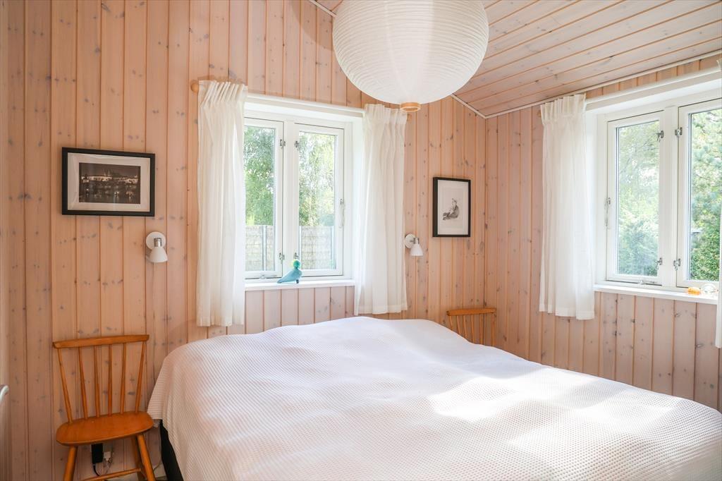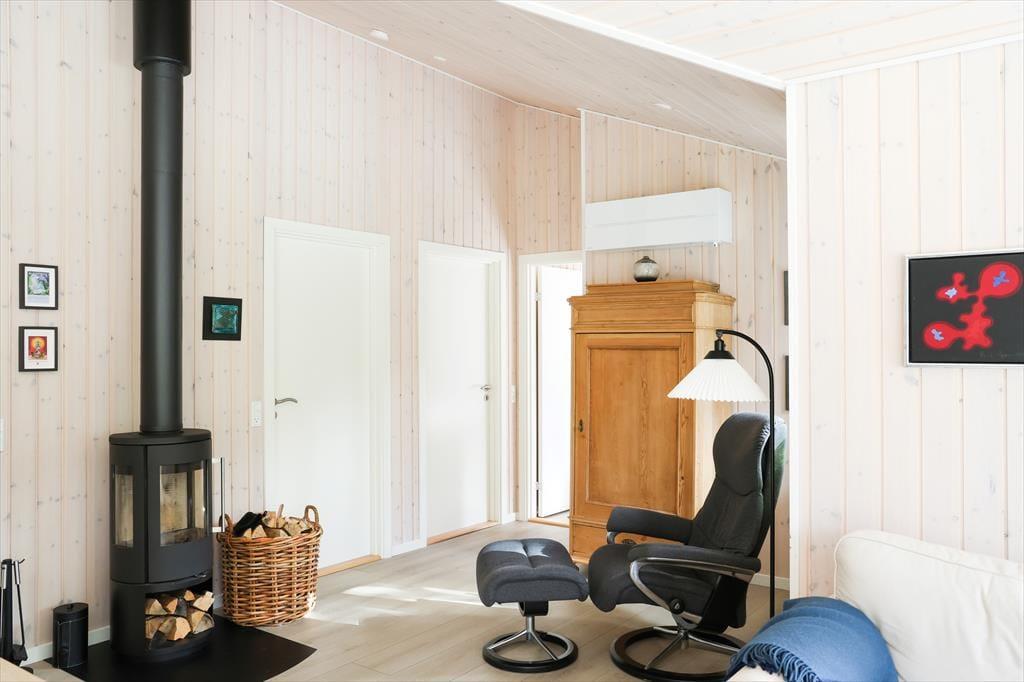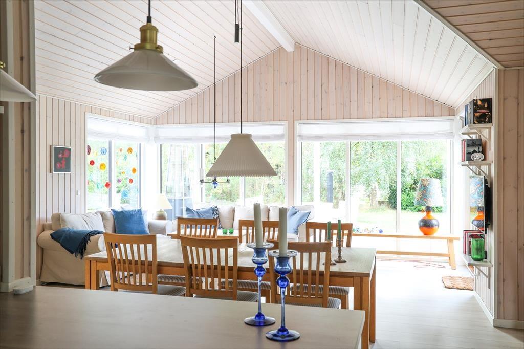 Dette fantastiske sommerhus fremstår lyst, indbydende og moderne med højt til loftet og store vinduer ud til den dejlige have. Sommerhusets hjerterum er helt centralt i huset, nemlig det store køkken/alrum som inviterer til mange hyggelige stunder med madlavning og afslapning ved spisebordet. Aftenerne kan nydes i det store sofaarrangement med en god bog, film i TV eller blot sidde at kigge ud i haven og se om du er heldig at spotte et rådyr. Huset er godt indrettet med gode værelser, badeværelse og gæstetoilet med vaskesøjle.