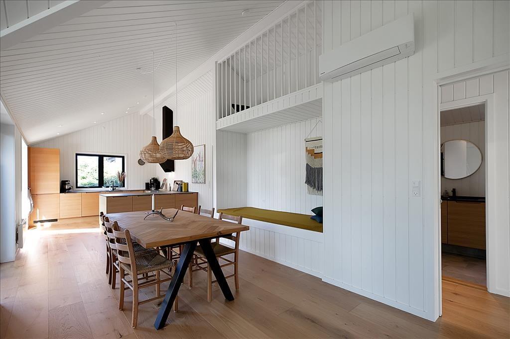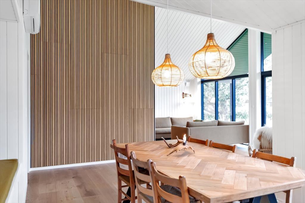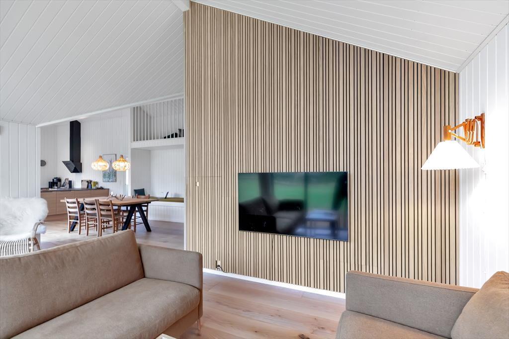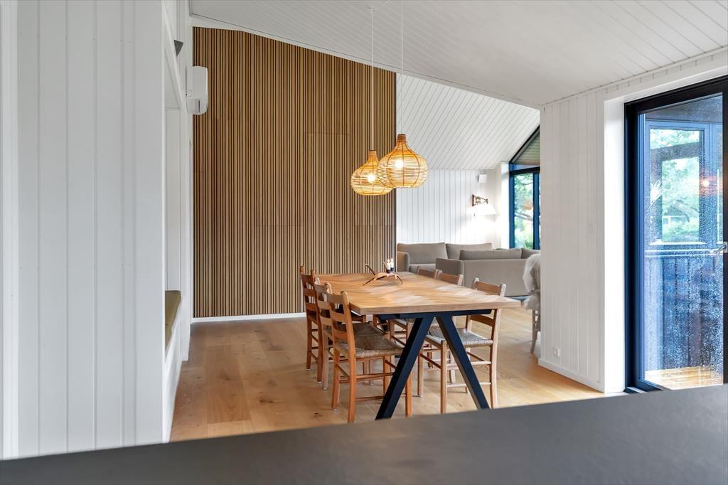 Sommerhuset er indrettet med lækker stue med fantastisk lysindfald. Her kan du fordybe dig i en god bog eller hvad med et slag kort og en latte. Der er Bluetooth højtaler, internet og du kan se netflix eller chromecaste via dit eget abonnement. I forbindelse med stuen er der et skønt åbent køkken med alt i udstyr bl.a. opvaskemaskine, her er der plads nok til at I kan hjælpes om at tilberede frokosten. Lækkert badeværelse med brus og tre dejlige soveværelser, det ene med dobbeltseng, det andet med to enkeltsenge. I det tredje er der både dobbelt underkøje og overkøje. Særdeles hyggelig have, med trampolin. Og vi skal bestemt også huske at nævne den fantastiske terrasse, hvor du både kan nyde solen fra morgen til aften og se et rådyr gå forbi. Der er masser af spil og legetøj i huset til børn i alle aldre. Alt i huset fremstår nyt, lyst og lækkert.