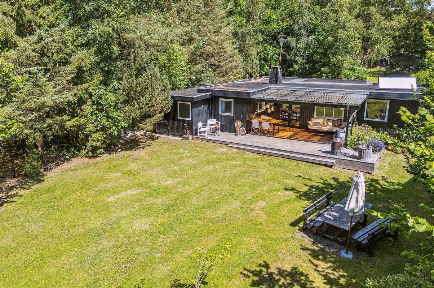 Hyggeligt sommerhus ved Gudmindrup Strand med stor have, legeplads og tæt på børnevenlig sandstrand.