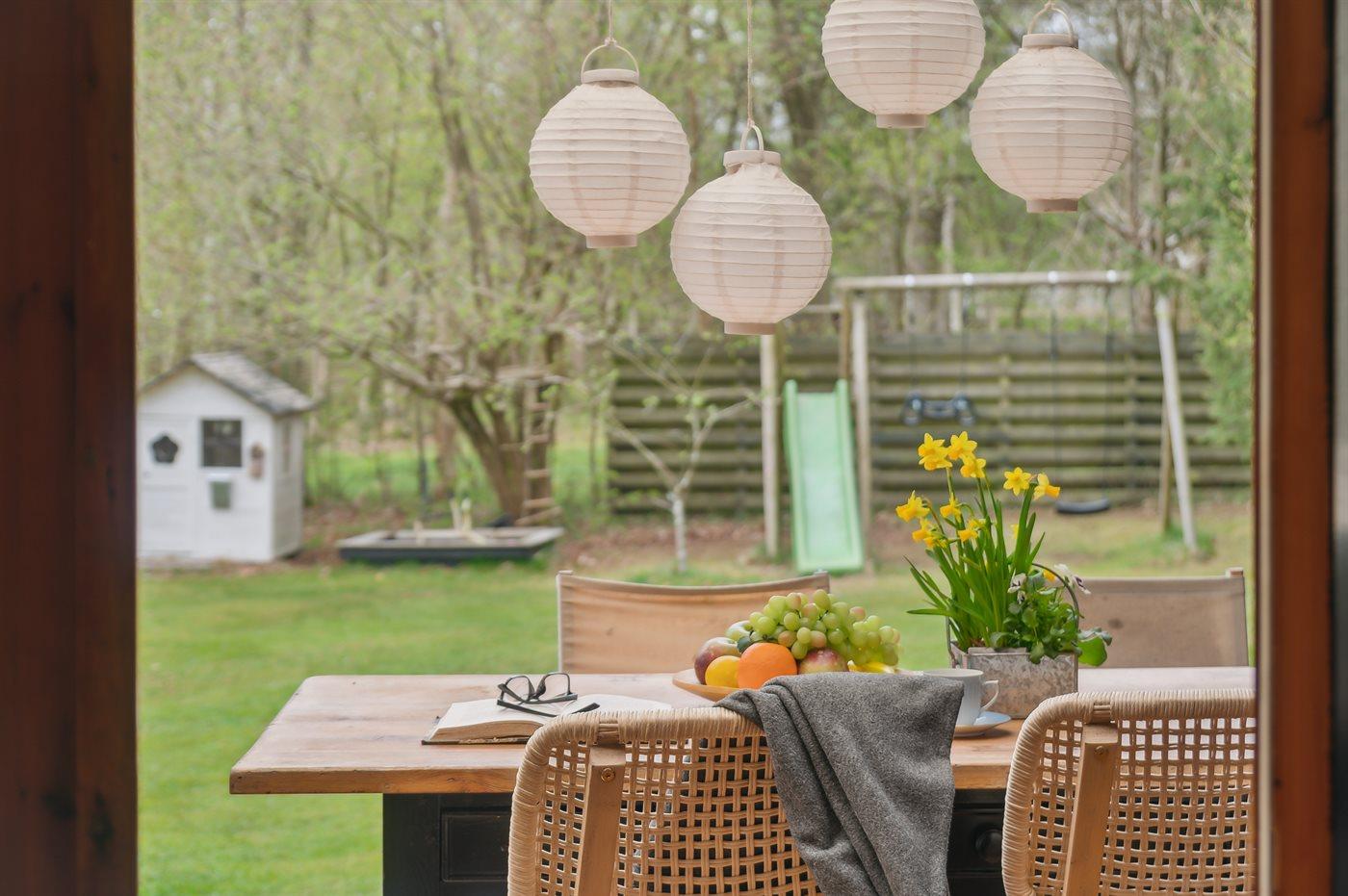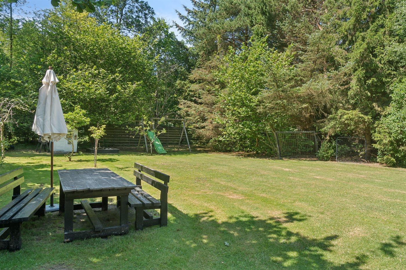 I den store have er der rig mulighed for leg med børnene og der er sandkasse, legehus, gynge og rutsjebane.
