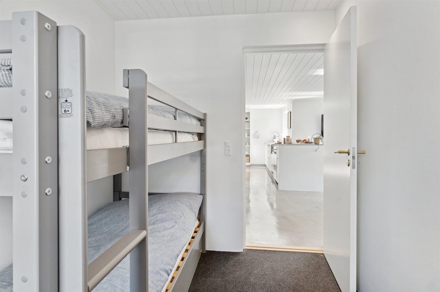 I selve huset er der 3 soveværelser. I de 2 af soveværelserne er der dobbeltsenge. I det 3. soveværelse er der en køjeseng med i alt 3 sovepladser (der er en udtræksseng i bunden). Badeværelse med bruseniche og gulvvarme.