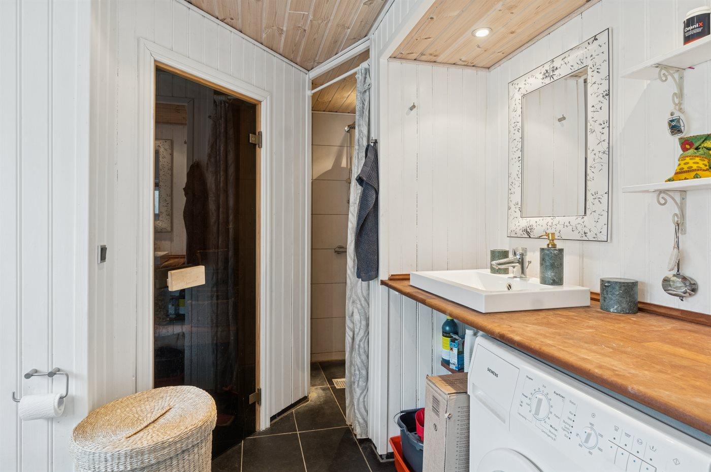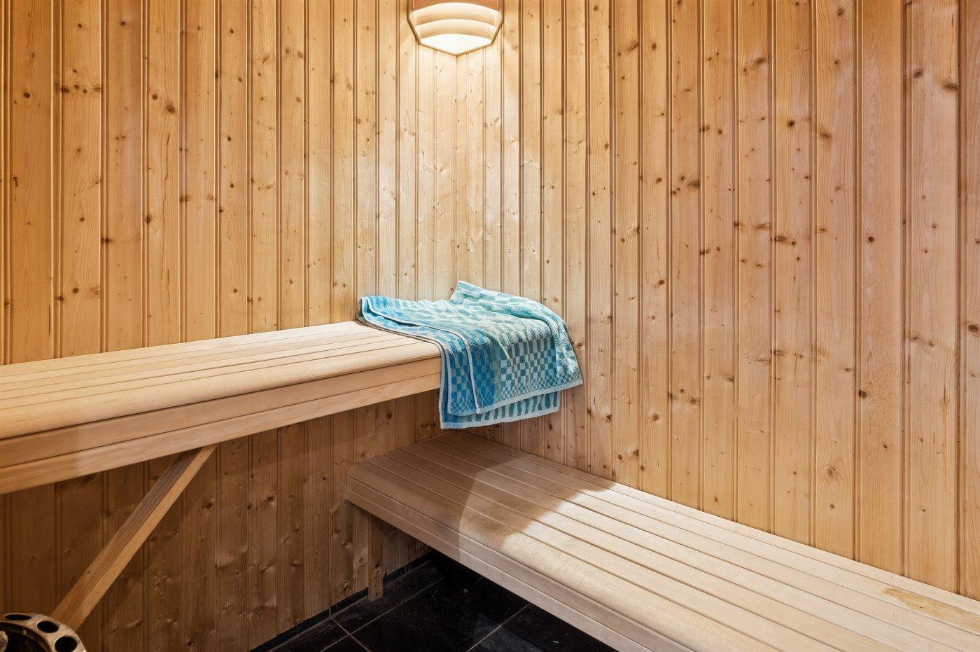 Der er 2 badeværelser med bruseniche og 2 toiletter. Der er gulvvarme på 2 badeværelser. I saunaen er der mulighed for afslapning.
