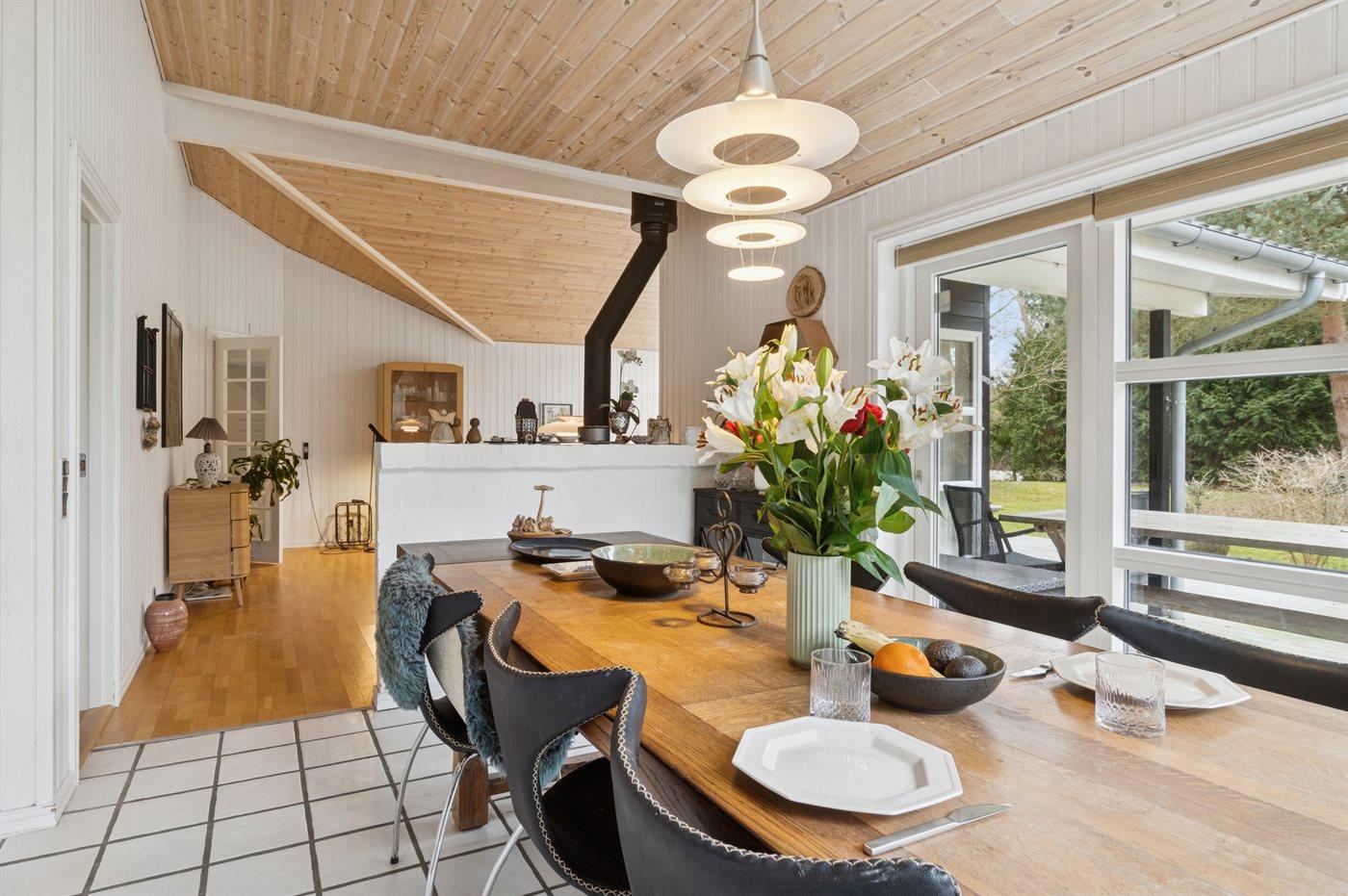 Huset er med sine 117 kvadratmeter og loft-til-kip i det meste af huset rummeligt og luftigt, og de mange store vinduespartier sikrer at huset er lyst og venligt.