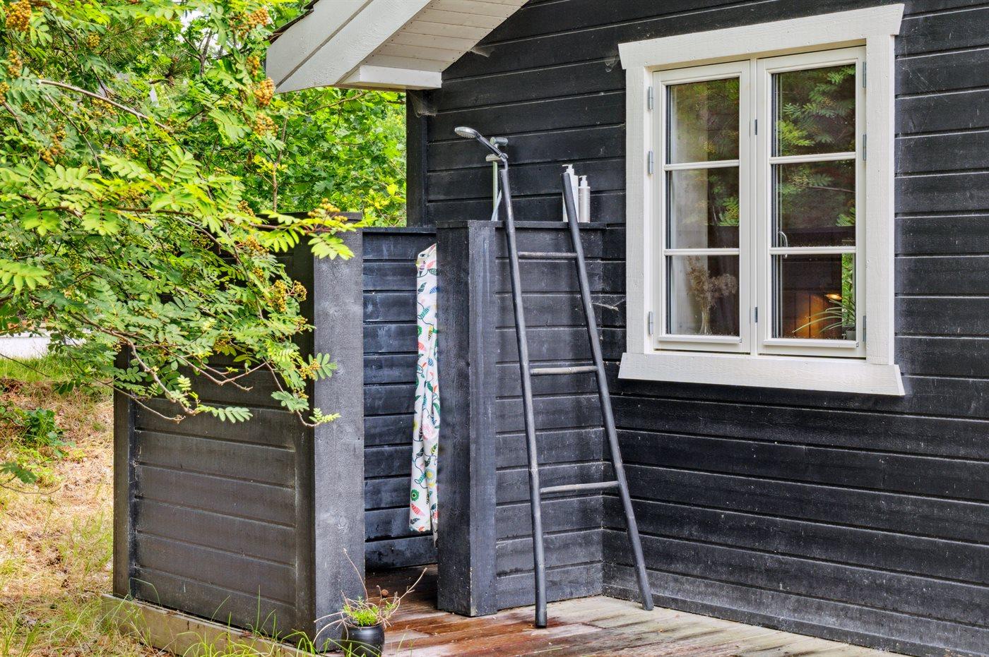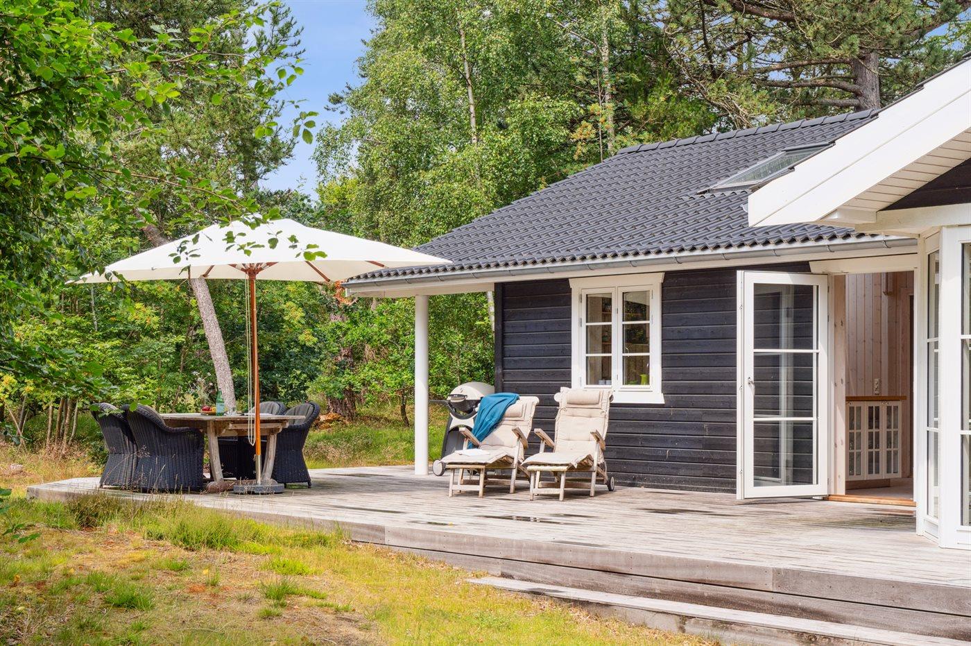 Ferieboligen er beliggende på en 1688 m² stor naturgrund. Der er 750 m til havet. Nærmeste forretning er beliggende i en afstand af 2500 m. Til ferieboligen hører 110 m² terrasseareal. Desuden er der 20 m² overdækket terrasse. Shelter. Udendørs bruser. Der er mulighed for at tilberede maden udendørs i udekøkkenet. Grill til rådighed. Parkering ved ferieboligen.