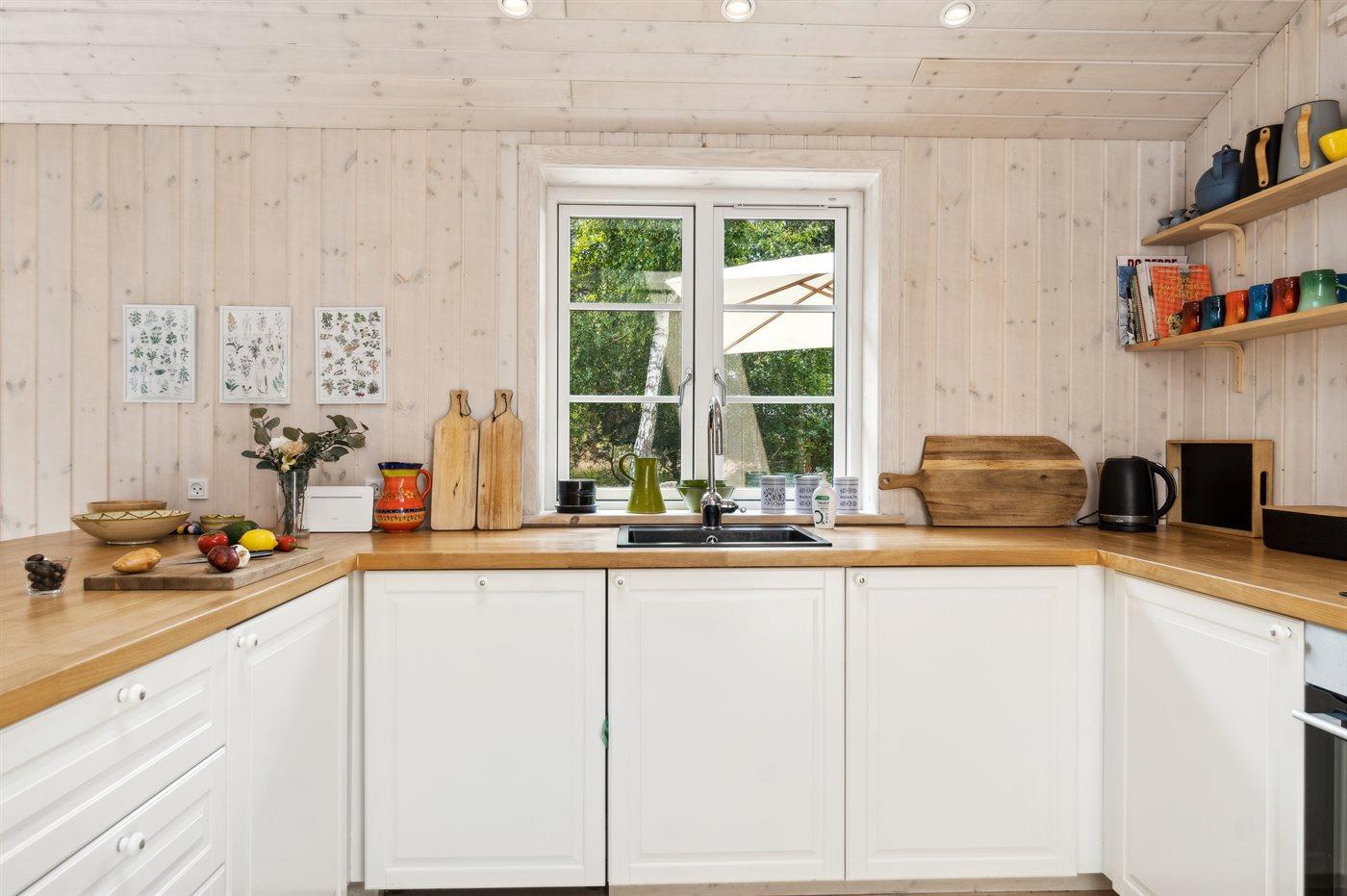Køkkenet er udstyret med 1 køleskab. Der er 4 induktionskogeplader, varmluftovn samt opvaskemaskine.