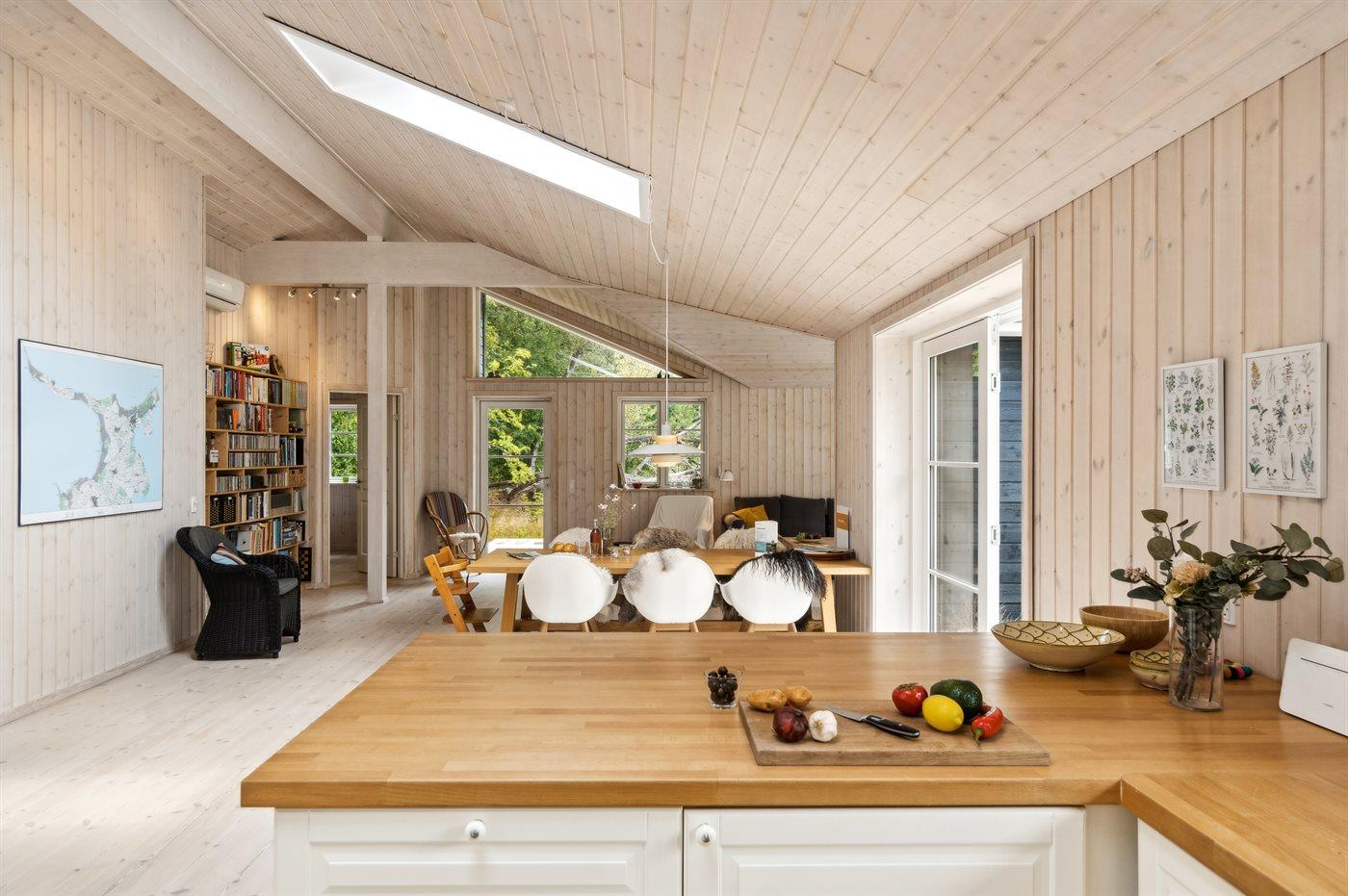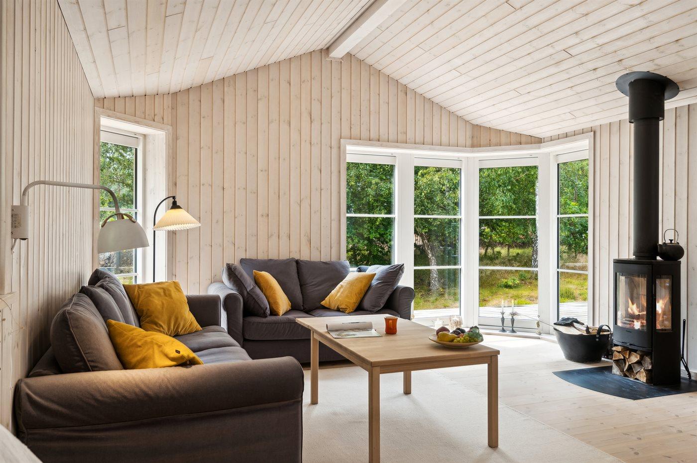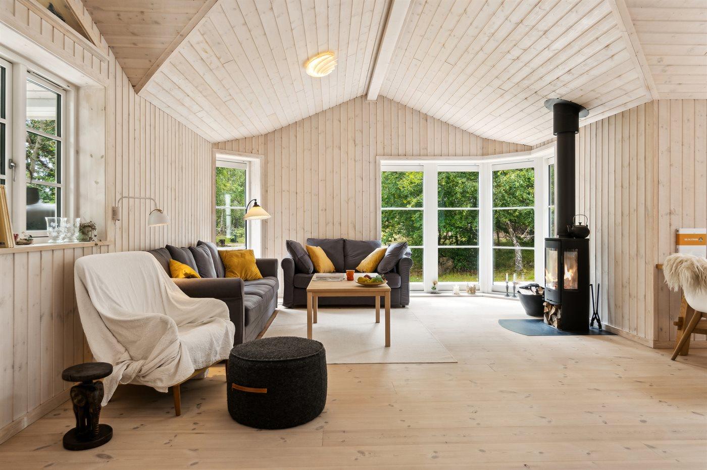 Flot sommerhus fra 2019 med 3 soveværelser, energibesparende varmepumpe og stort terrasseområde i naturskønne omgivelser ved Sejerø Bugt.