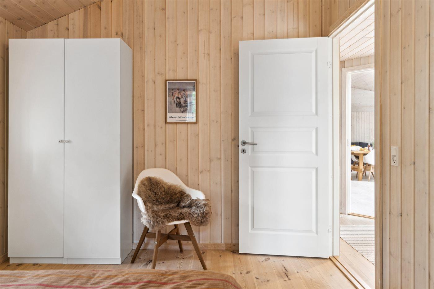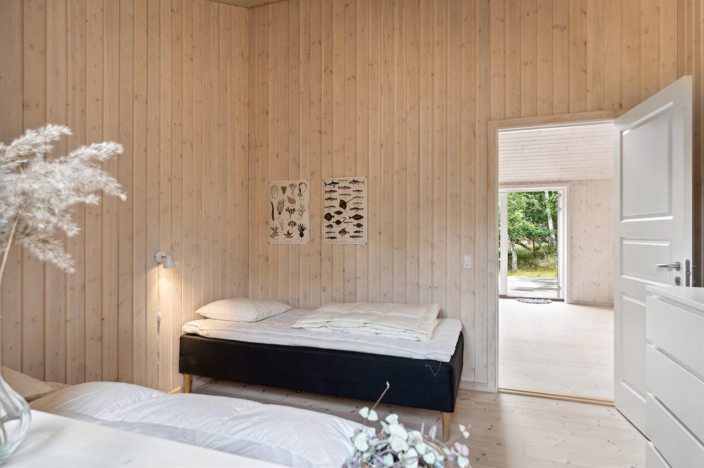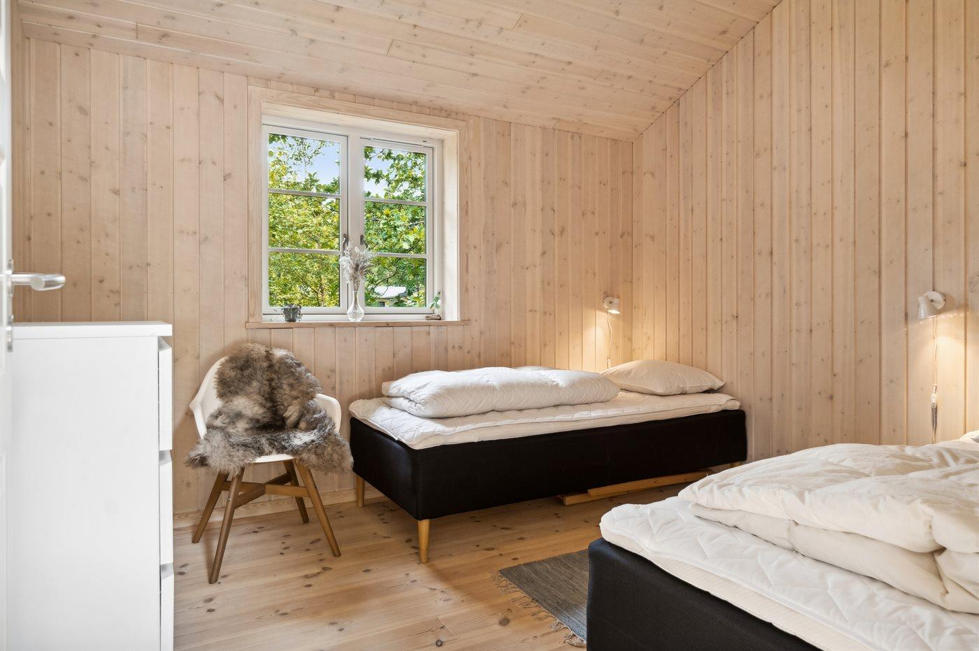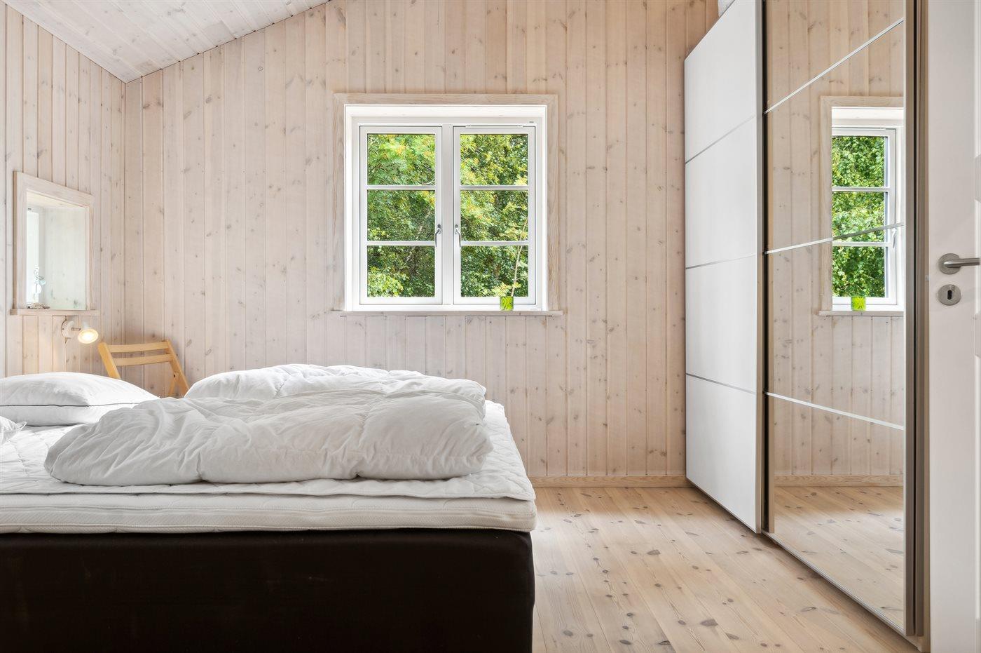 Der er i alt 3 soveværelser. Sovepladserne fordeler sig på: 4 sovepladser i dobbeltsenge. 2 sovepladser i enkeltsenge. Derudover er der 1 stk. barneseng.