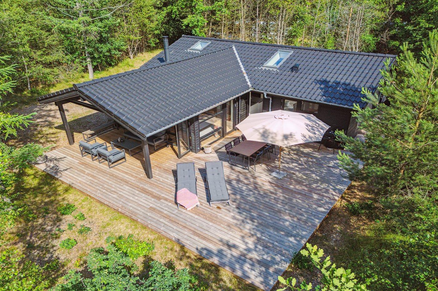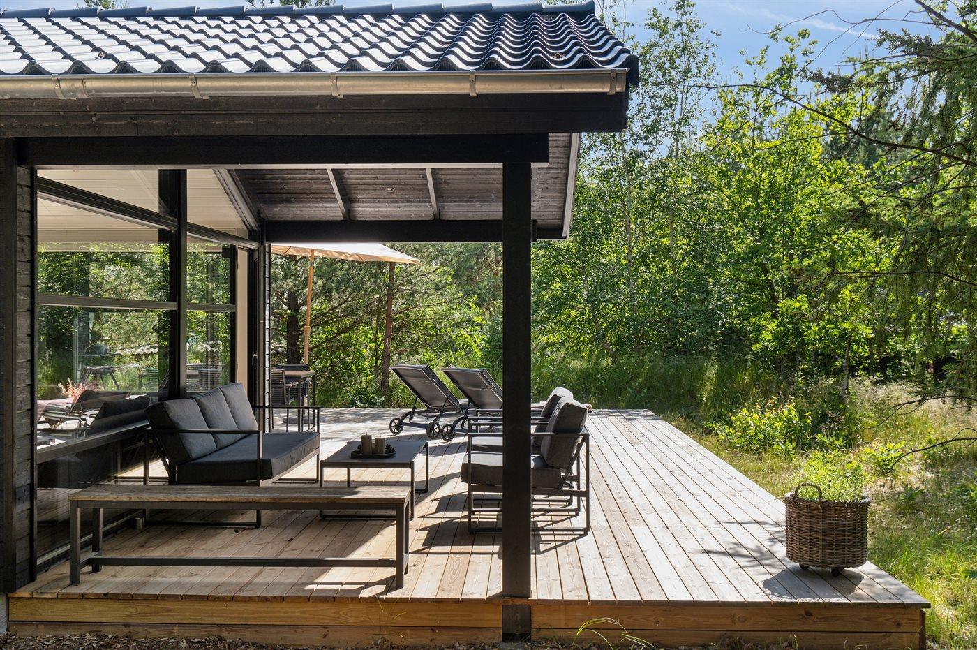 Moderne sommerhus fra 2023 nær børnevenlig strand ved Sejerø Bugt med sauna og stor terrasse.