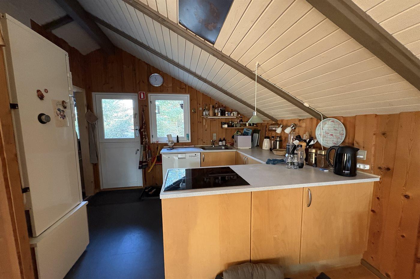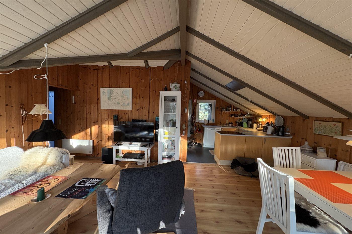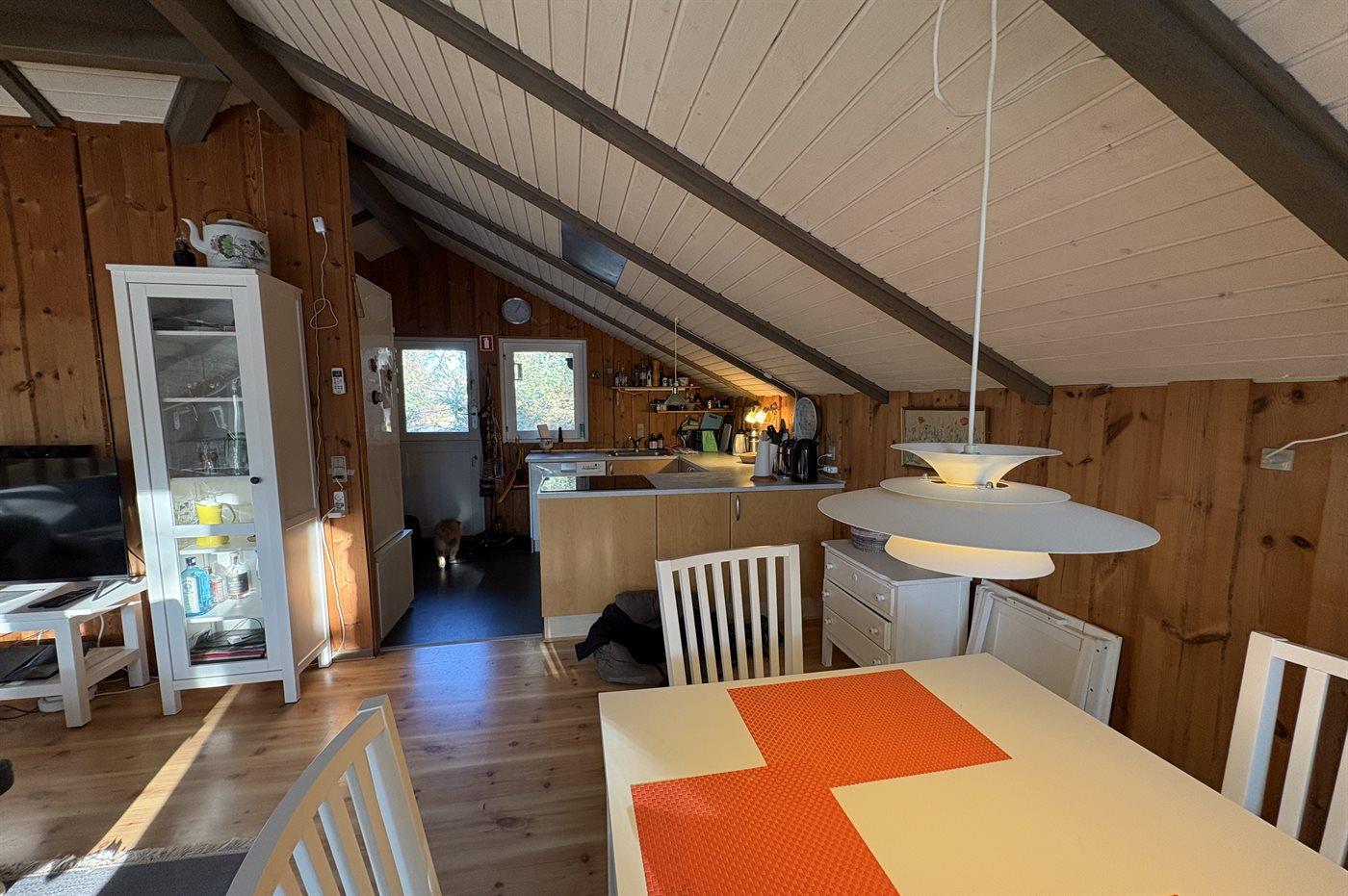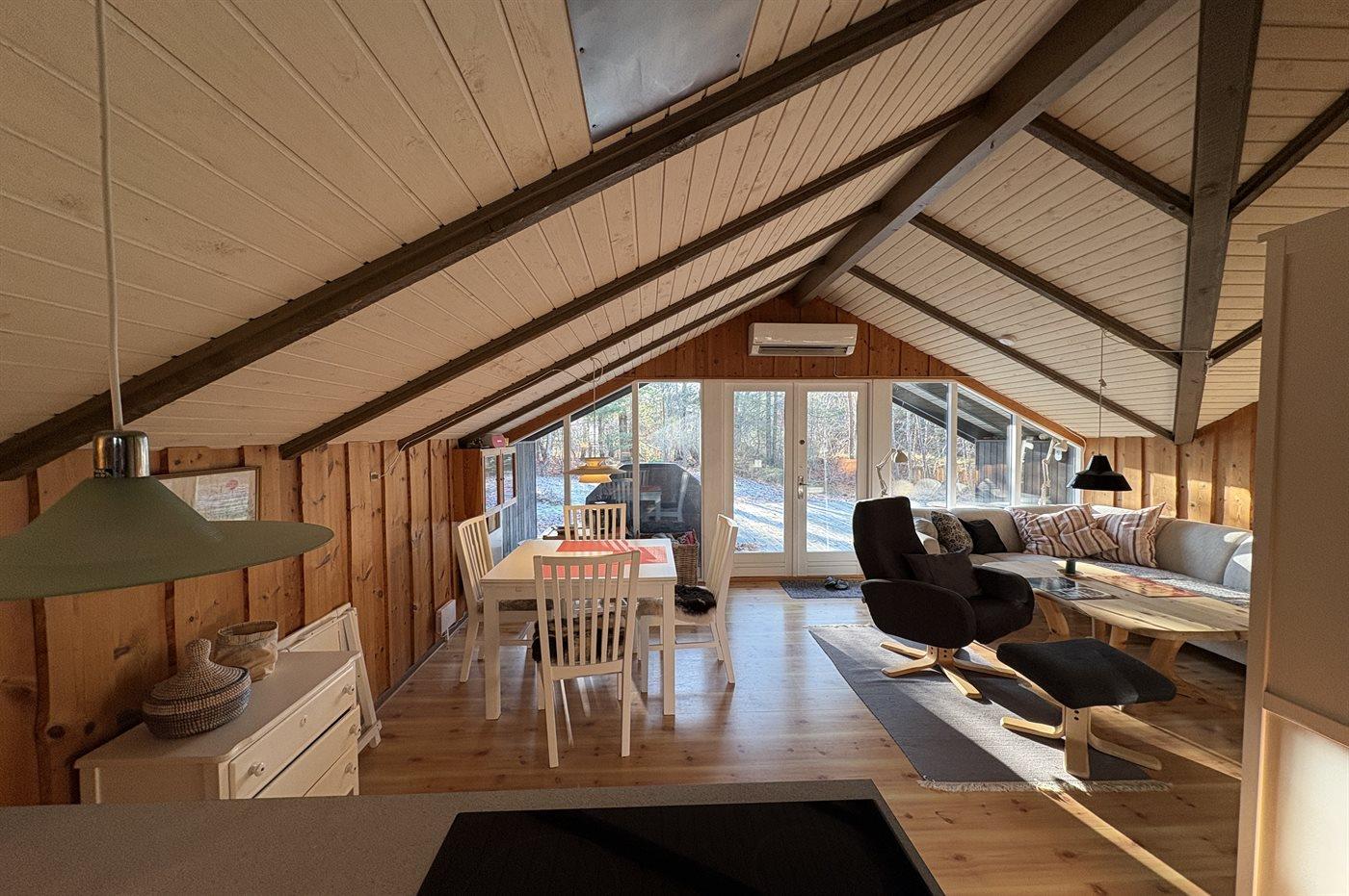 Køkkenet og spisepladsen ligger i åben forbindelse med stuen og på både nord- og sydsiden af huset findes der dejlige terrasser. Dele af terrasseområderne er overdækkede med mulighed for at finde både læ og skygge.