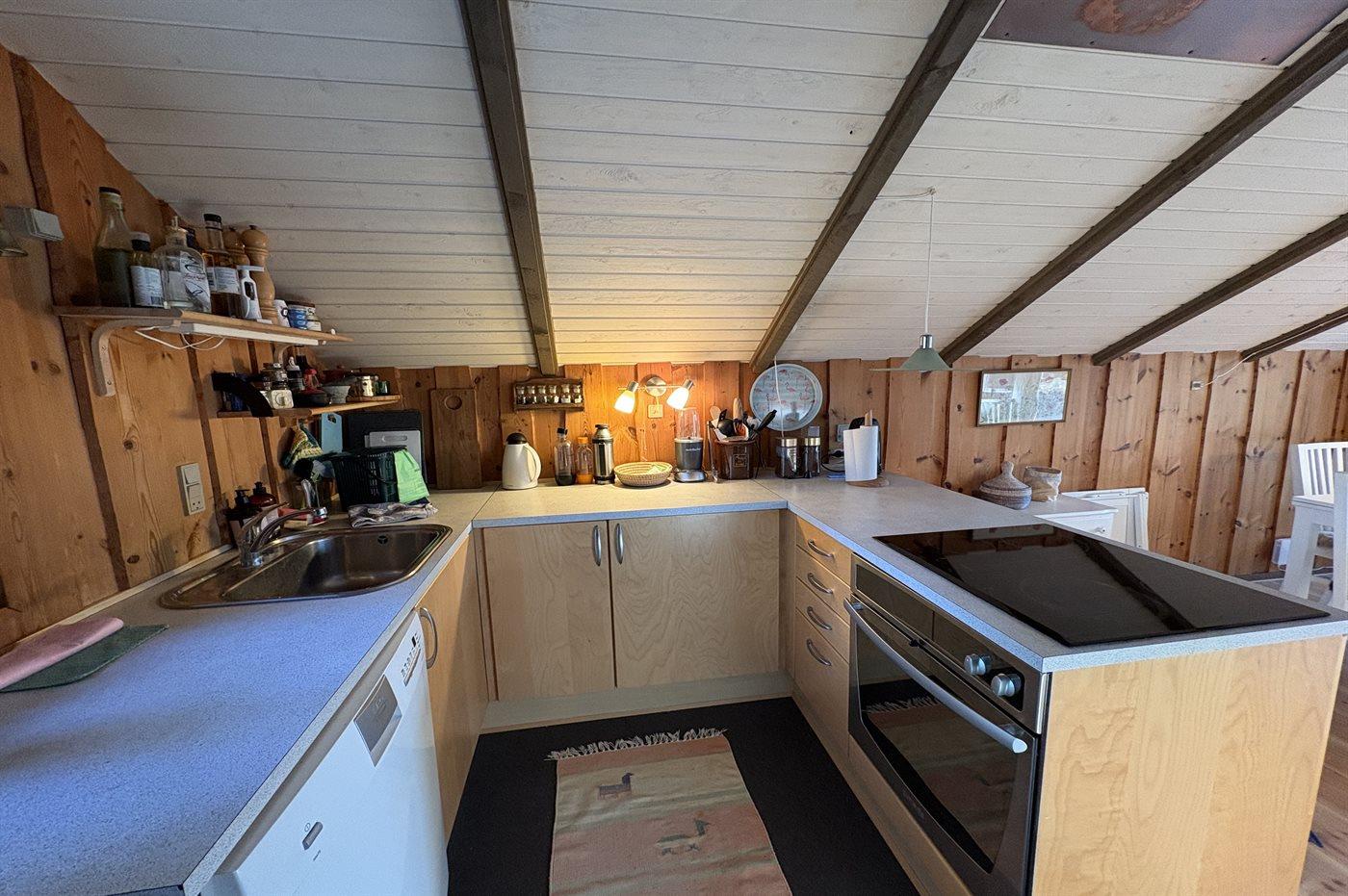 Køkkenet er udstyret med 1 køleskab. Der er 4 keramiske kogeplader, varmluftovn, mikrobølgeovn samt opvaskemaskine.