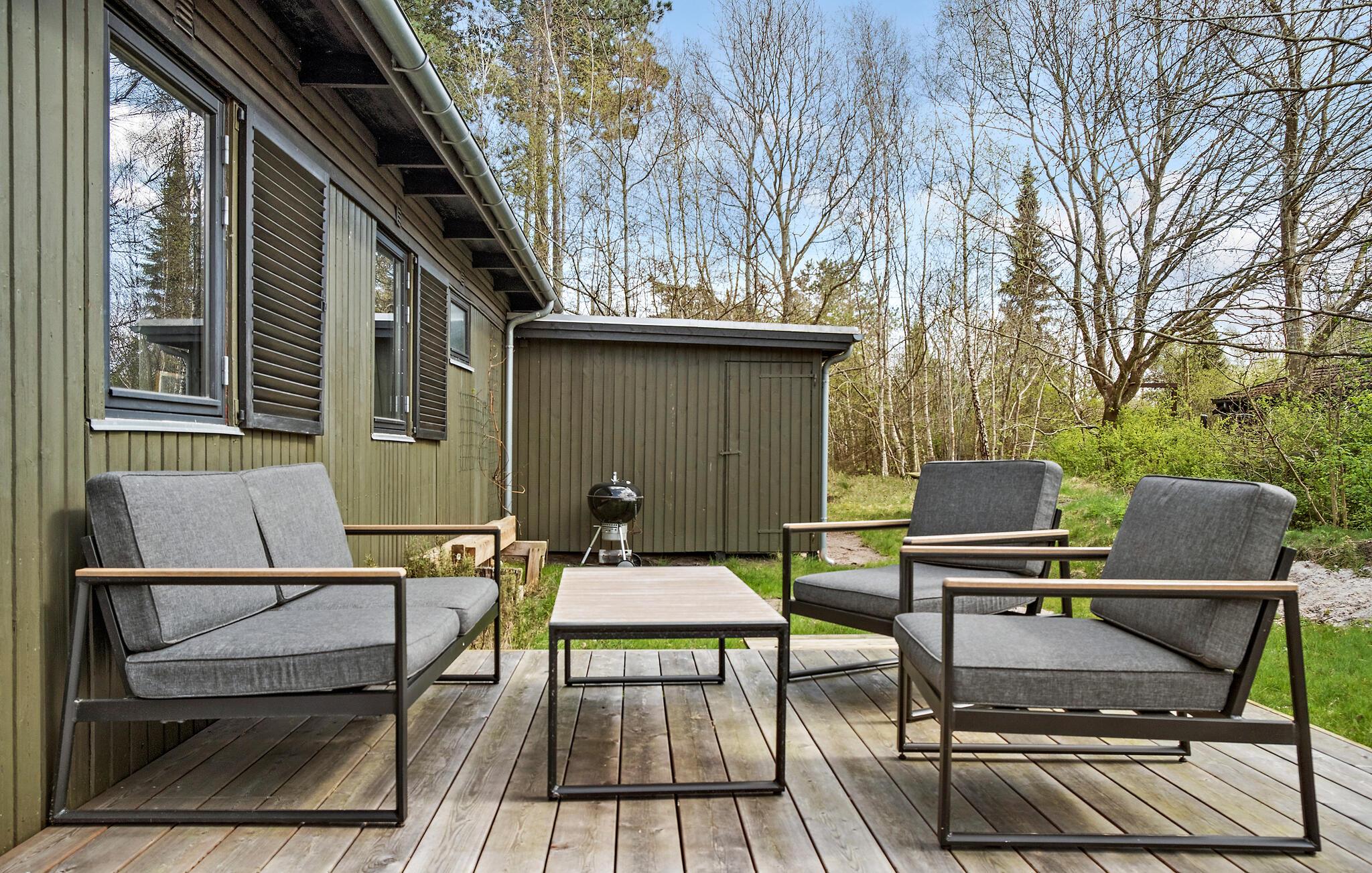 På de varme dage kan I nyde dagens måltider i det fri på terrassen. Udeområdet er virkelig skønt og familievenligt med masser af legetøj og havespil, som børnene og hele flokken kan boltre sig med, inden I tilbereder familiens livretter på grillen om aftenen.