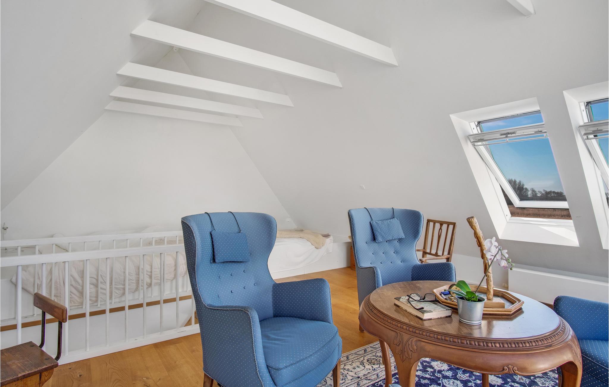 Træd ind i det smukke feriehus og føl jer hjemme fra starten. Lejligheden er fordelt på to etager og er veludstyret, så I kan tilbringe en ubekymret ferie her. Kom sammen i stuerne og nyd en fantastisk udsigt over landskabet hele vejen til havet gennem de mange vinduer. Lav mad sammen og nyd jeres måltider på terrassen udenfor.
