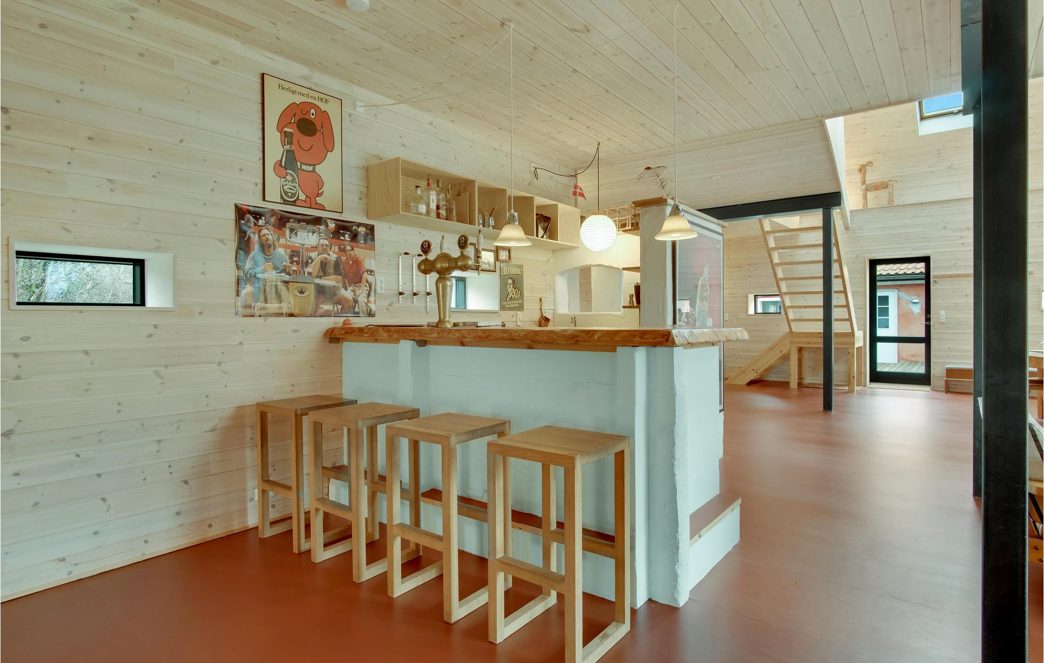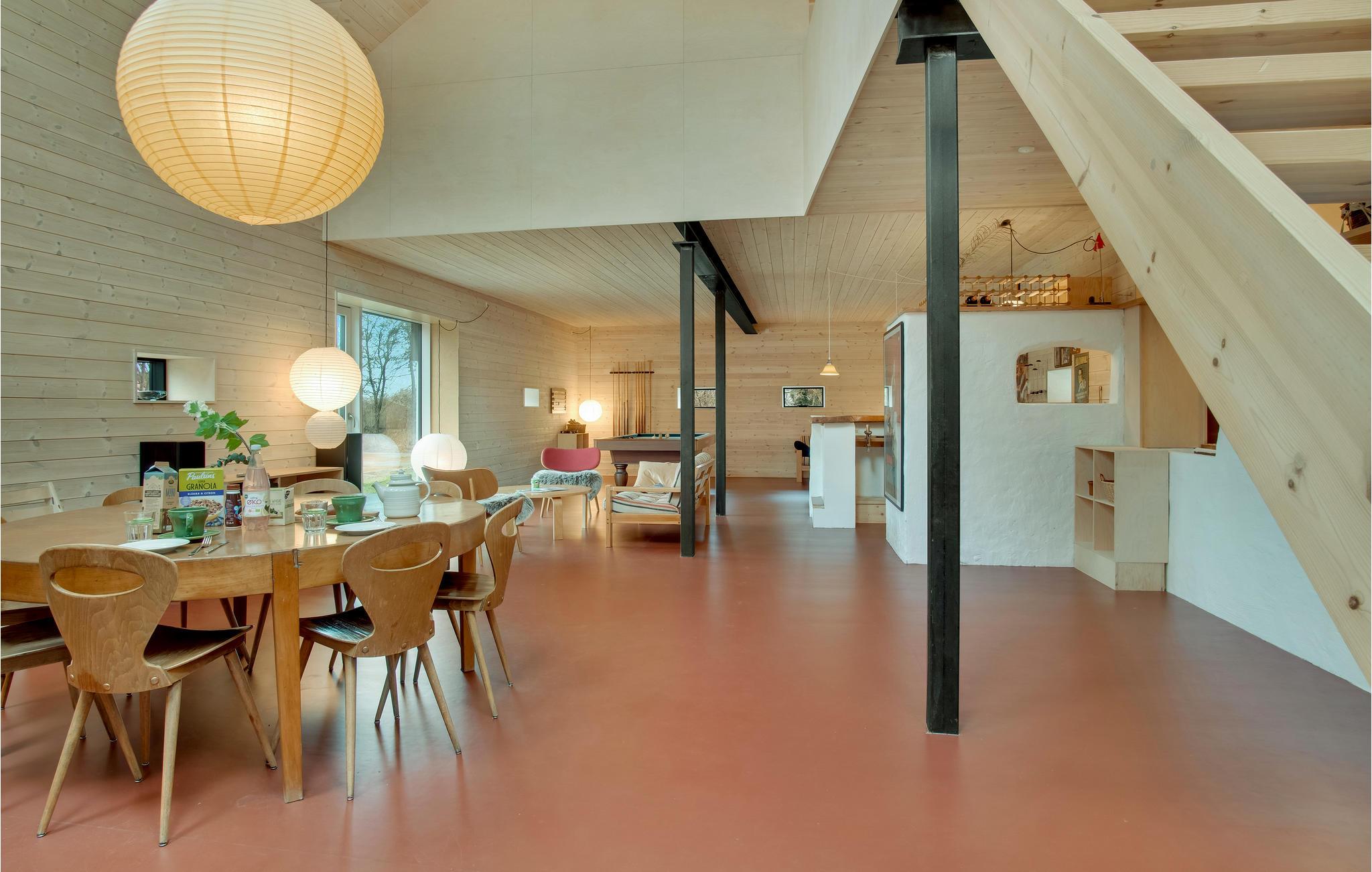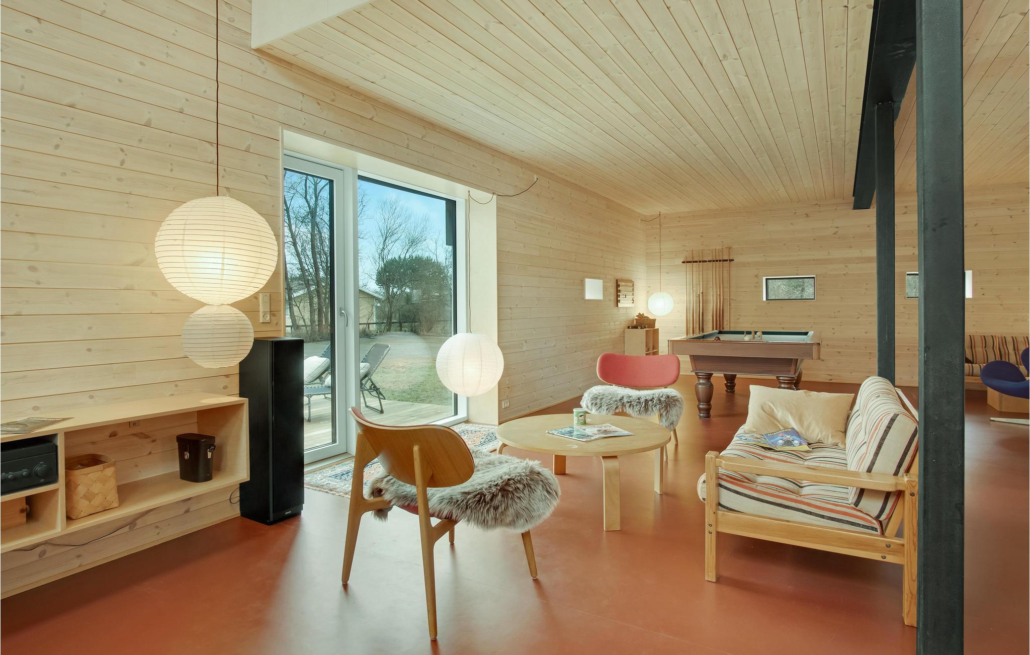 Der er gode rammer til en familieferie i dette velindrettede sommerhus, som emmer af moderne kvalitetsløsninger og flotte bygningsmæssige detaljer som de fritlagte bjælker. De store vinduespartier inviterer de grønne omgivelser ind i boligen. Snup et spil billard eller bordtennis, før I giver jer god tid til at nyde dagens måltider, mens I kigger ud på haven. Efter en lang dag på farten kan I læne jer tilbage i stuen og snakke om de største oplevelser, mens ilden knitrer hyggeligt i brændeovnen.
