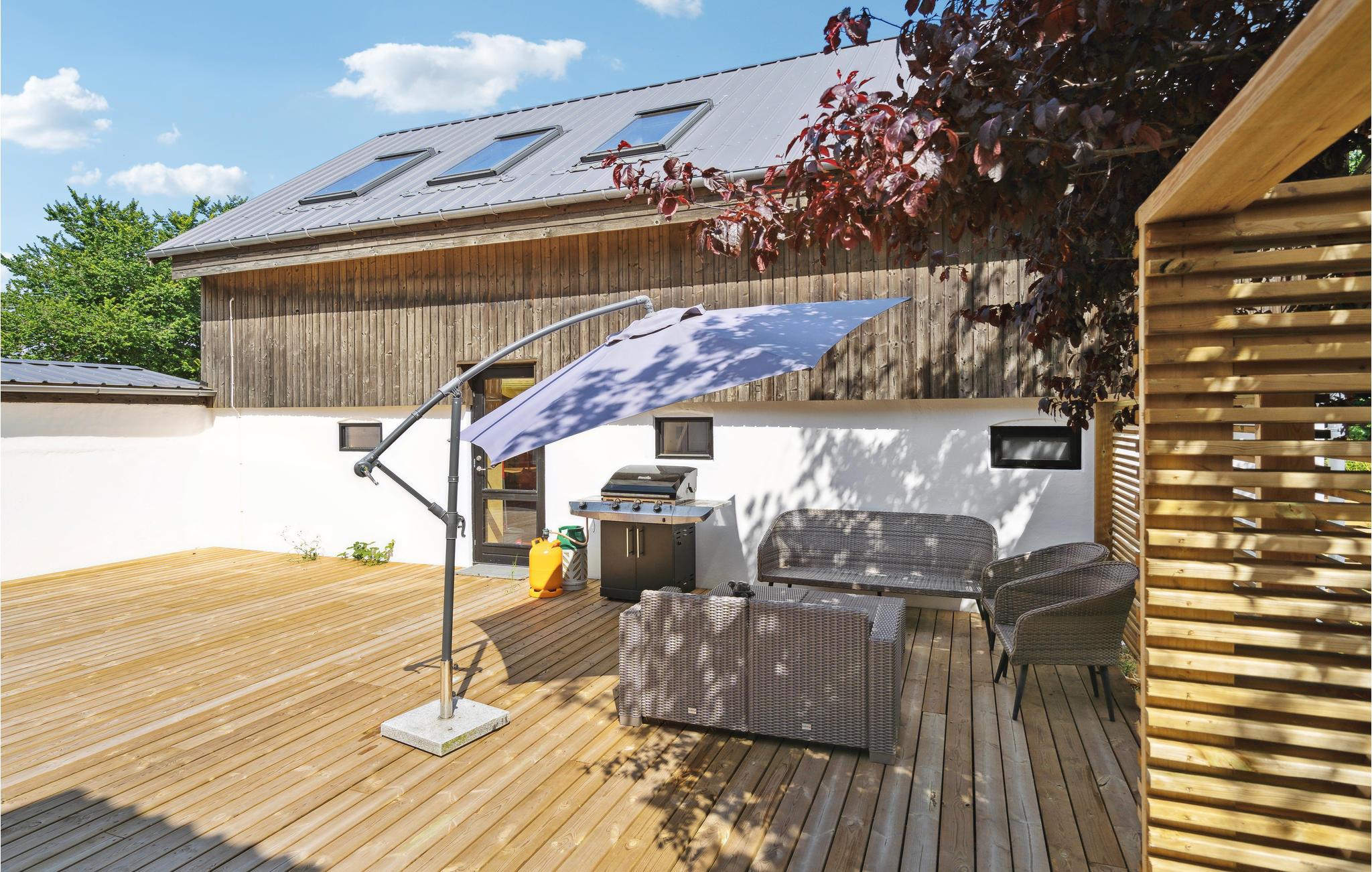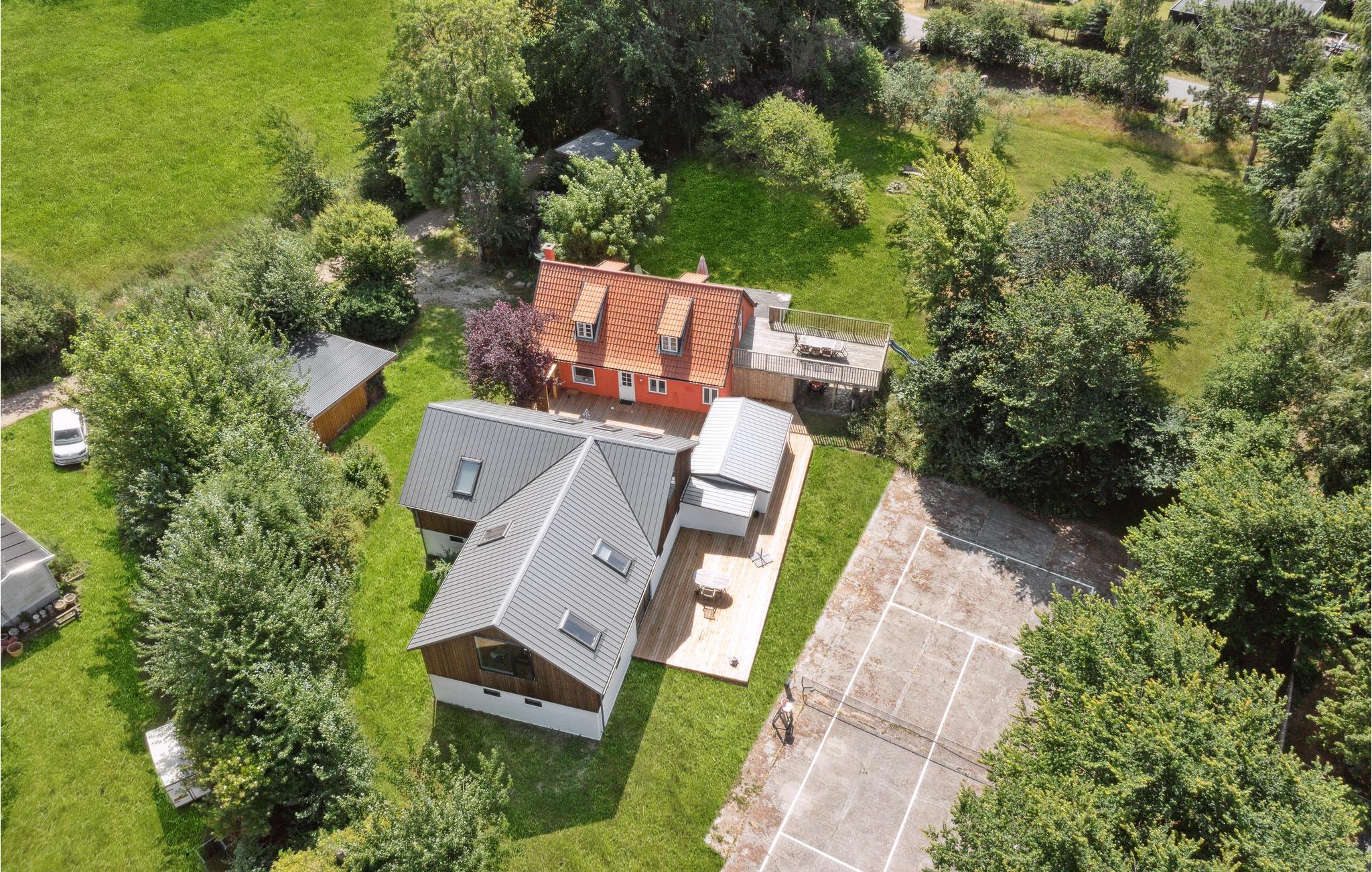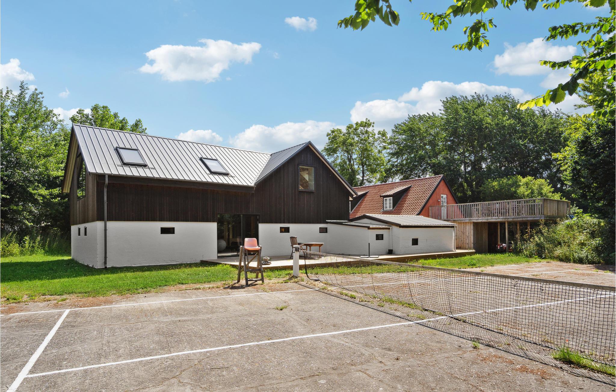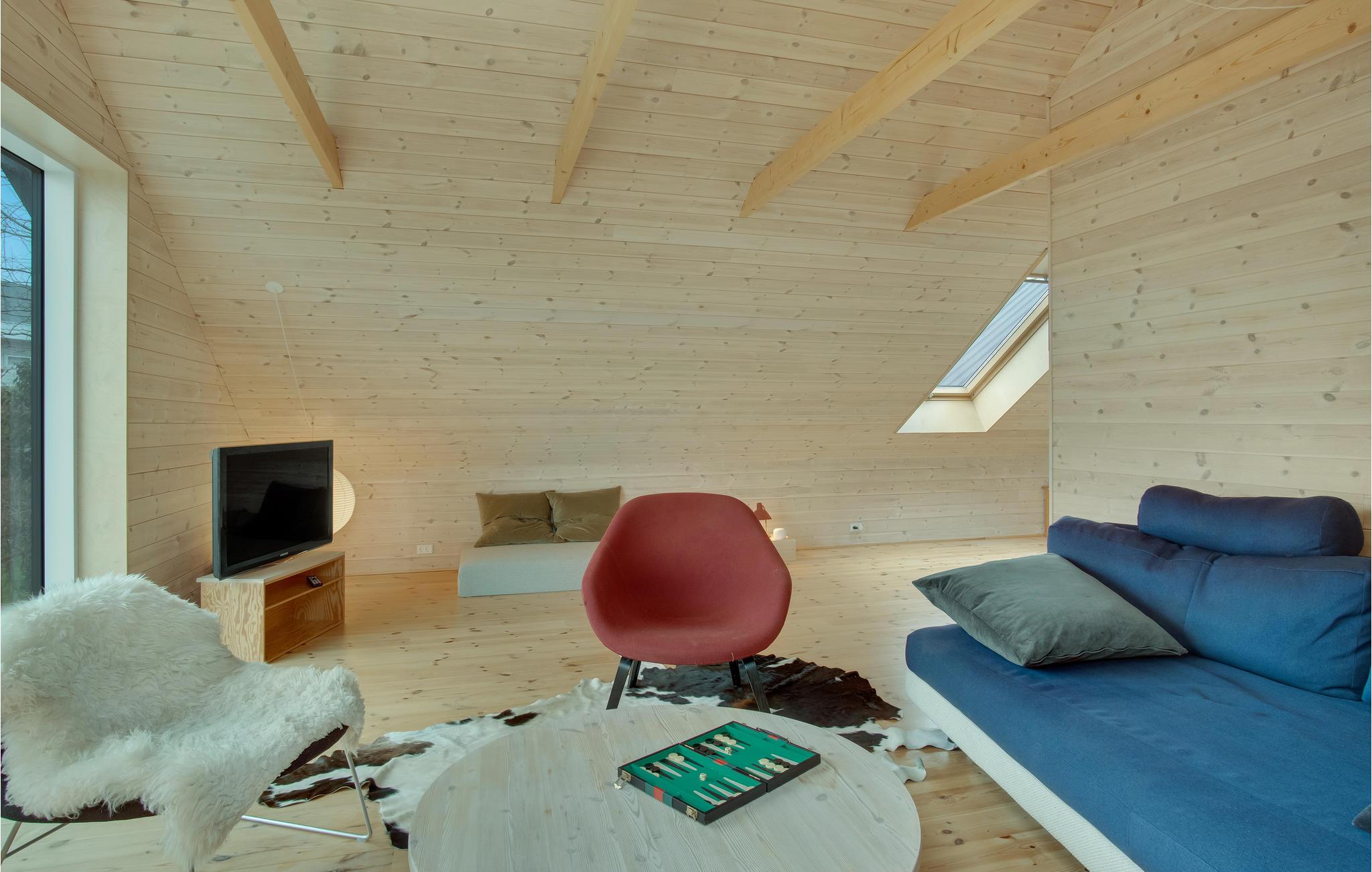 Der er gode rammer til en familieferie i dette velindrettede sommerhus, som emmer af moderne kvalitetsløsninger og flotte bygningsmæssige detaljer som de fritlagte bjælker. De store vinduespartier inviterer de grønne omgivelser ind i boligen. Snup et spil billard eller bordtennis, før I giver jer god tid til at nyde dagens måltider, mens I kigger ud på haven. Efter en lang dag på farten kan I læne jer tilbage i stuen og snakke om de største oplevelser, mens ilden knitrer hyggeligt i brændeovnen.