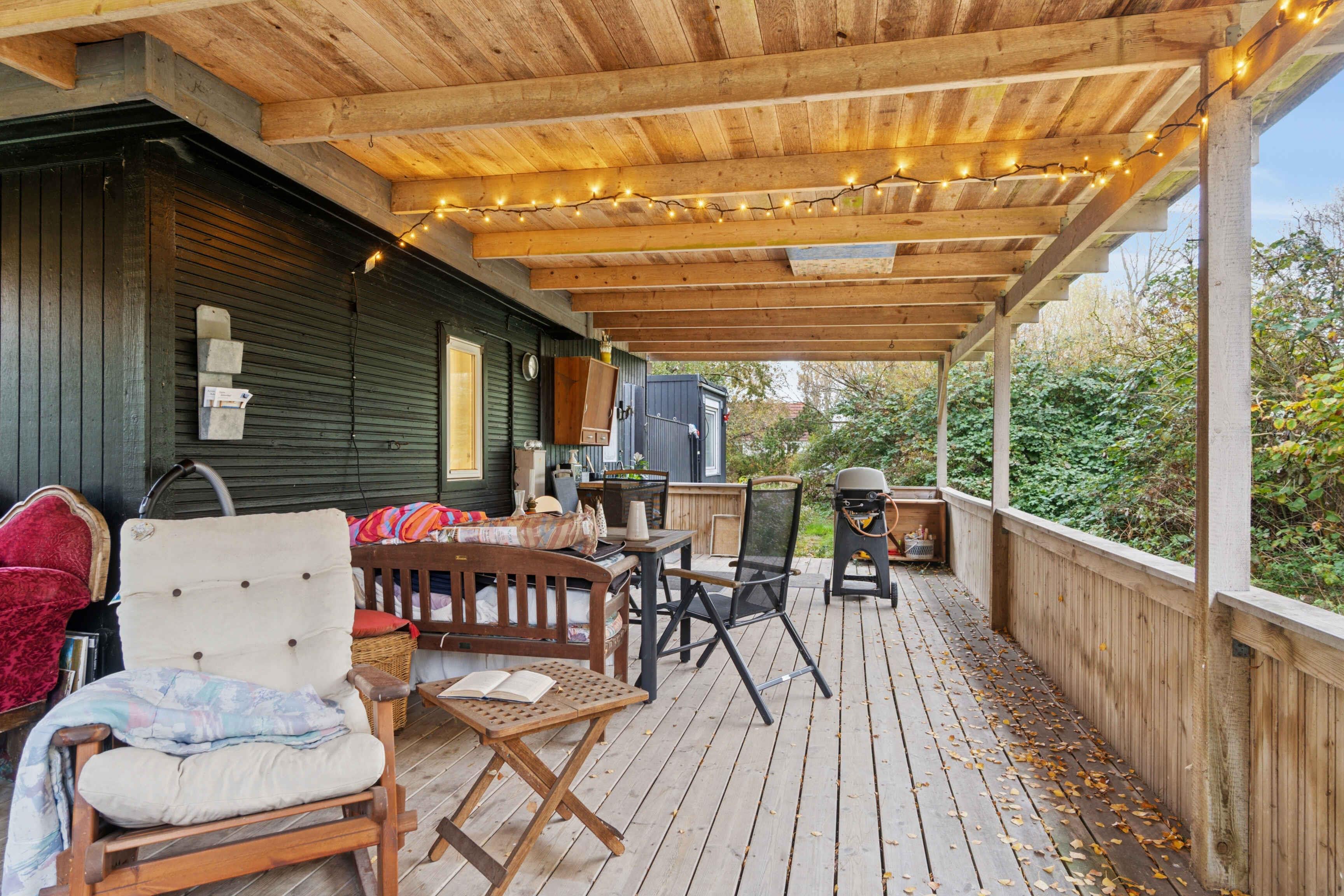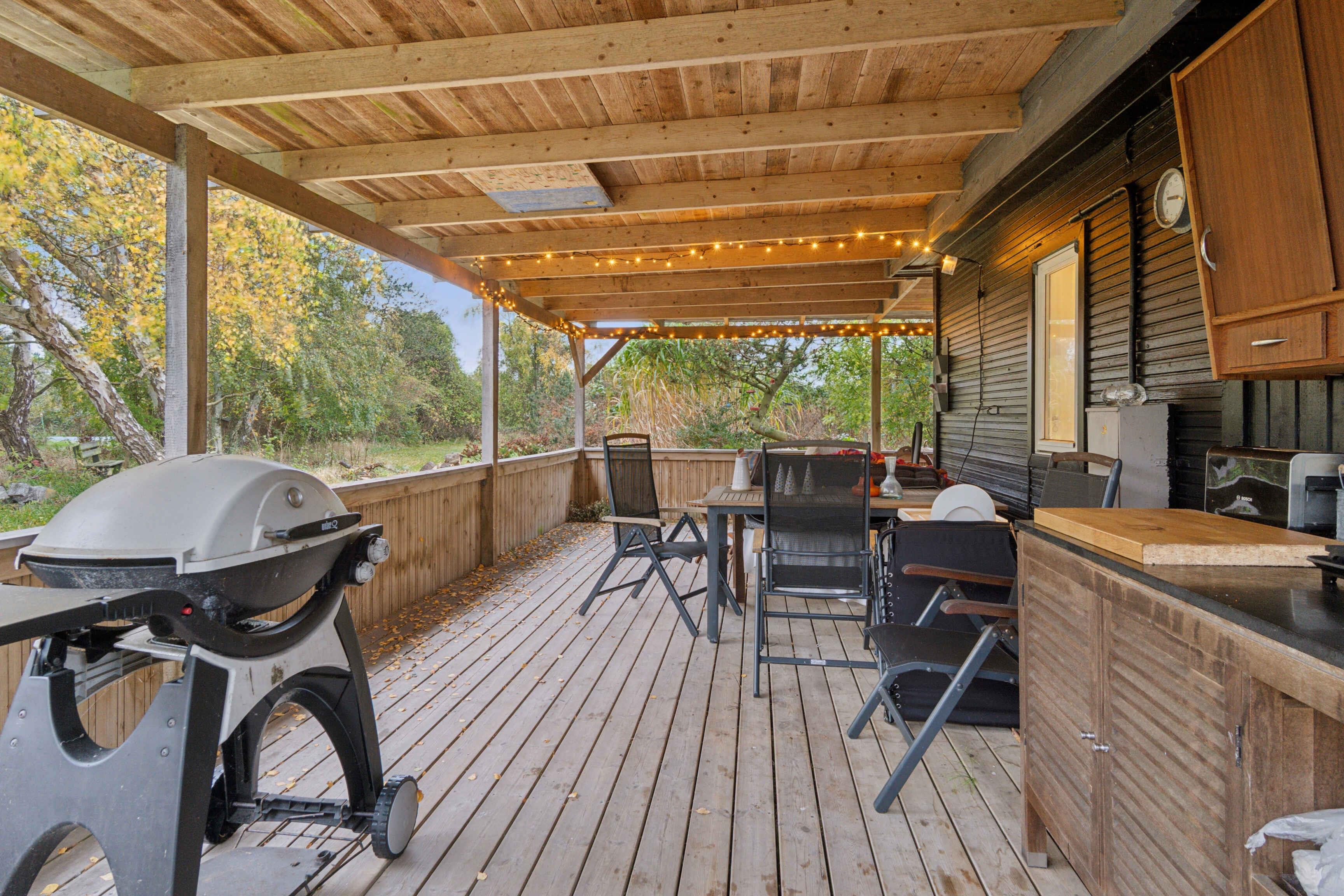 Lyst og enkelt sommerhus tæt på havet med stor overdækket træterrasse, udebruser og privat grund. Perfekt til afslapning, badeture og hyggelige grillaftener i rolige omgivelser på naturskønne Sejerø.