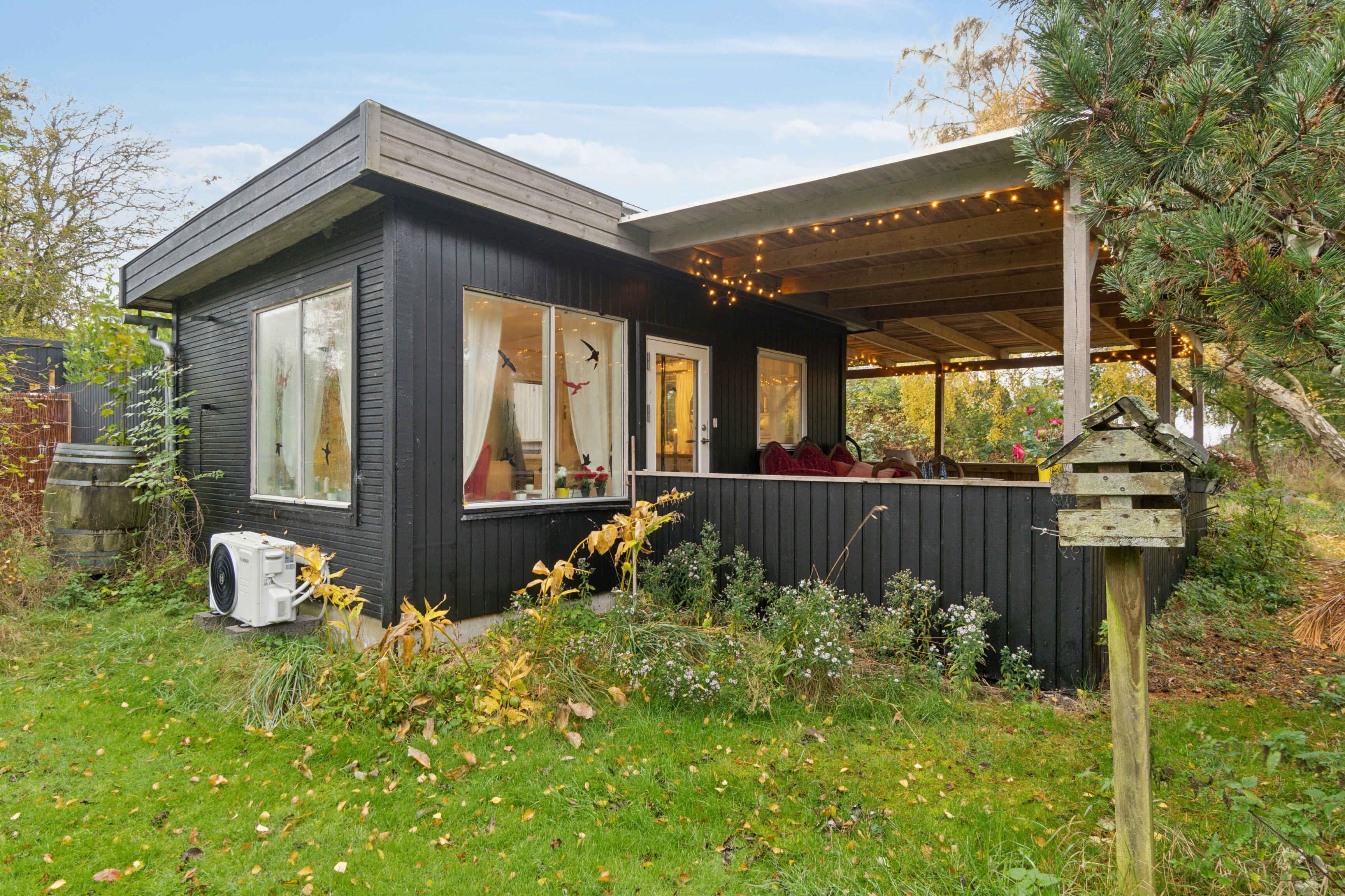 Det lille træhus på 40 m² rummer stue, køkken, badeværelse og et soveværelse med fire sovepladser – perfekt til parret eller den lille familie. De lyse rum og store vinduer skaber ro og nærvær, mens den private grund sikrer fred og uforstyrret tid sammen. Kun 150 meter fra havet kan du starte dagen med en frisk dukkert eller en stille gåtur langs kysten. Efterfølgende venter en stor overdækket træterrasse med plads til afslapning, solbadning og hyggelige grillaftener i læ for vinden. Efter en tur på stranden er det oplagt at skylle saltvandet af i udebruseren og nyde en stille stund på terrassen. Lyden af bølgerne og duften af havet minder dig om, hvor tæt naturen er her. Sejerø byder på åbne landskaber, badestrande og gode cykel- og vandreruter. Du kan besøge små gårdbutikker, se sæler ved vestkysten, udforske øens gamle gravhøje eller nyde stilheden ved havnen. Her finder du den ro, som mange længes efter – midt i havet, men tæt på alt, der betyder noget.