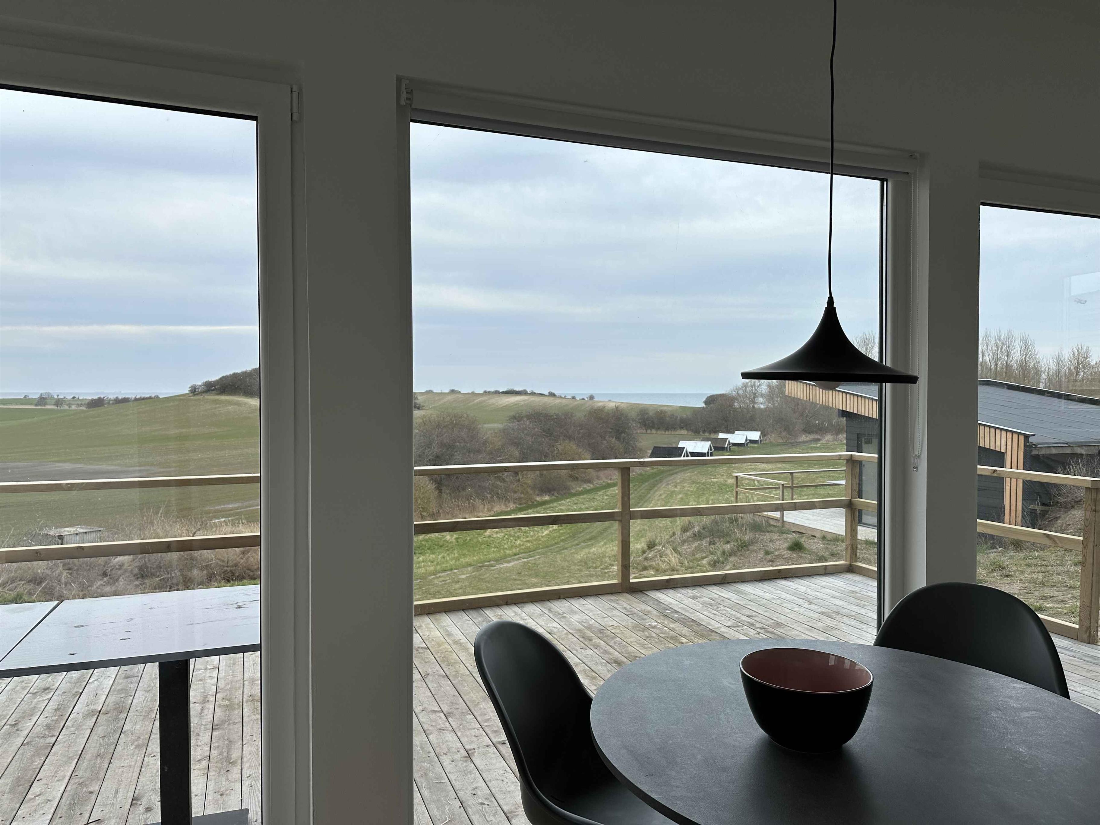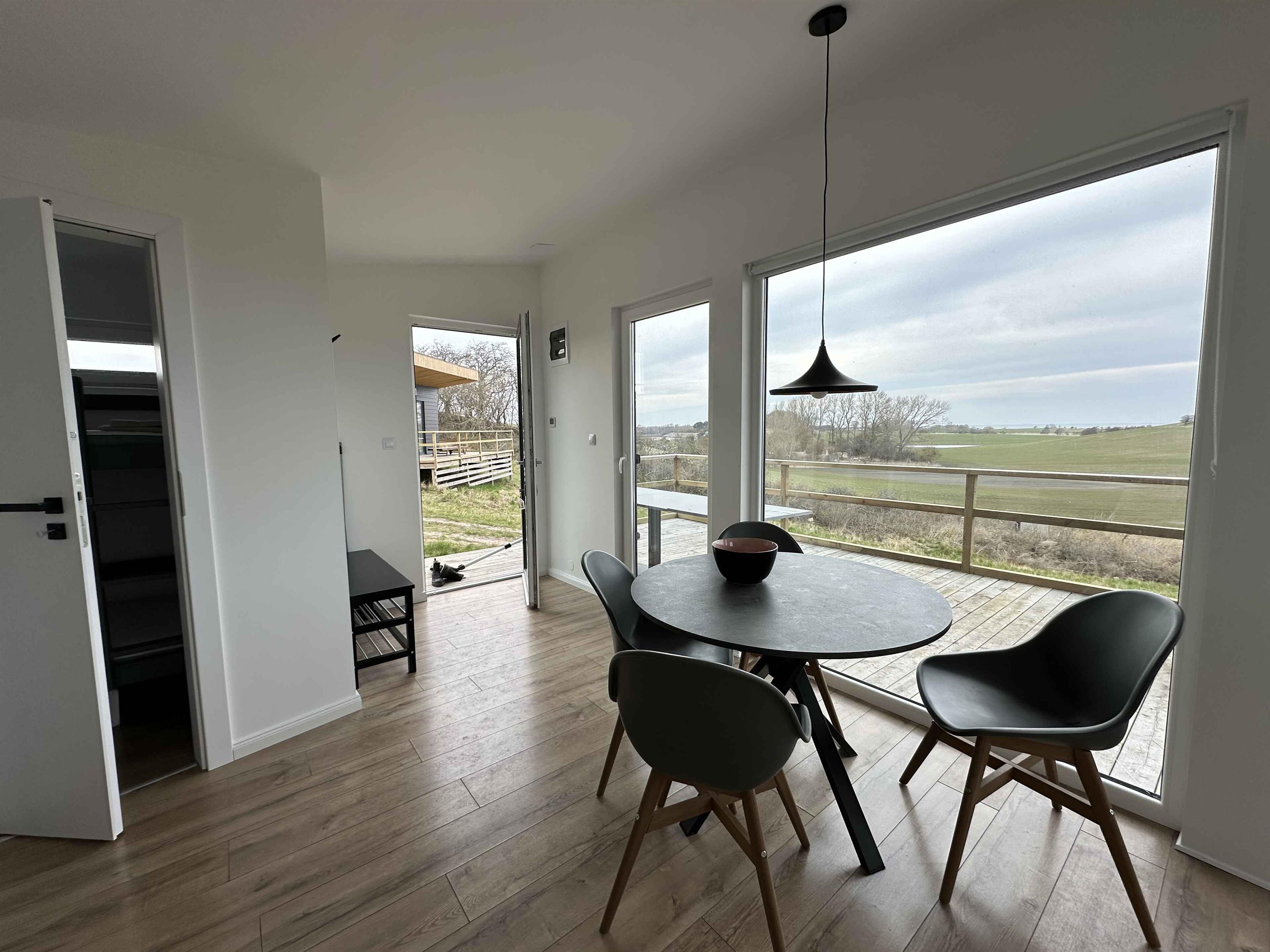 Hyggeligt Tiny house på Sejerø med panoramaudsigt over bakker og hav, perfekt til naturoplevelser og afslapning.