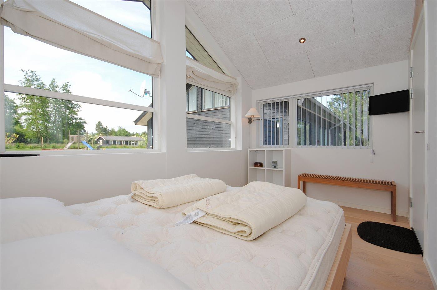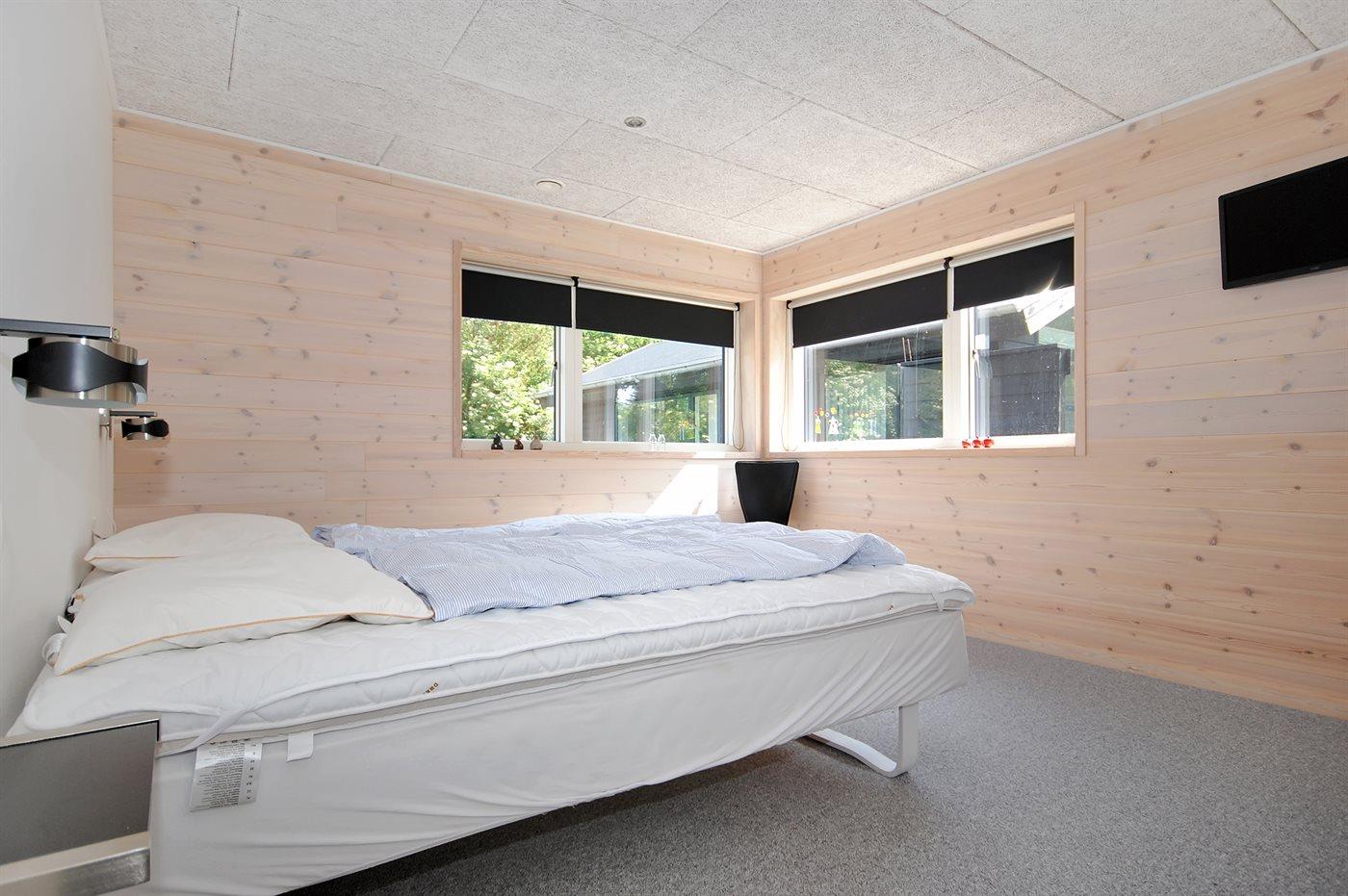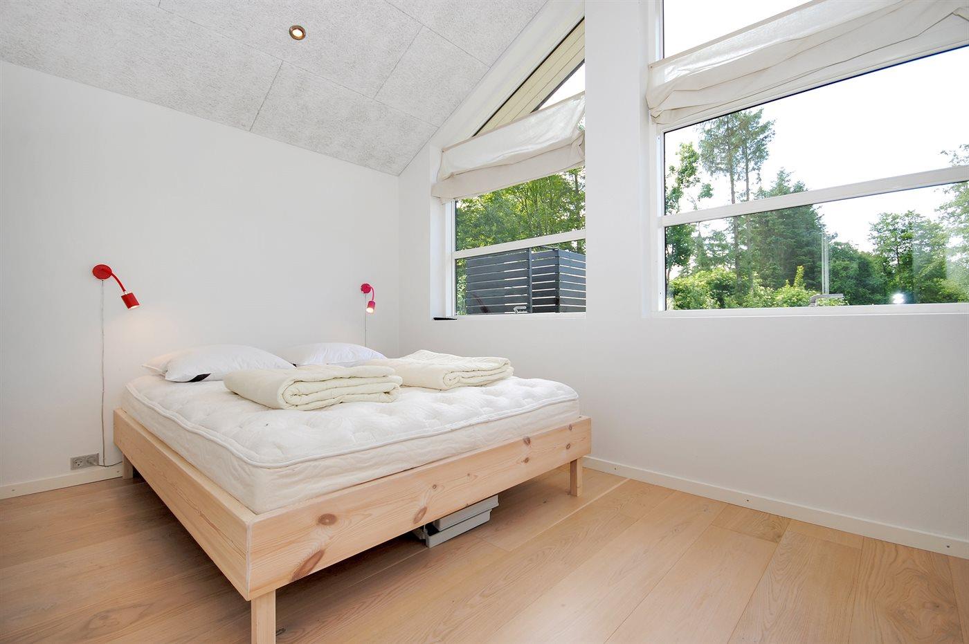Der er i alt 3 soveværelser. Sovepladserne fordeler sig på: 8 sovepladser i dobbeltsenge. 2 af disse sovepladser befinder sig på husets hems. Derudover er der 1 stk. barneseng.