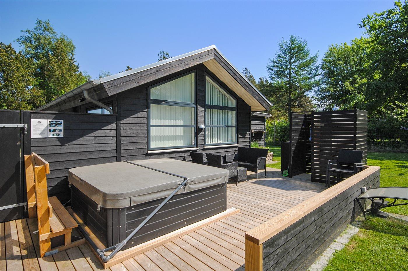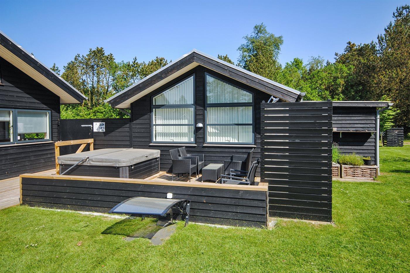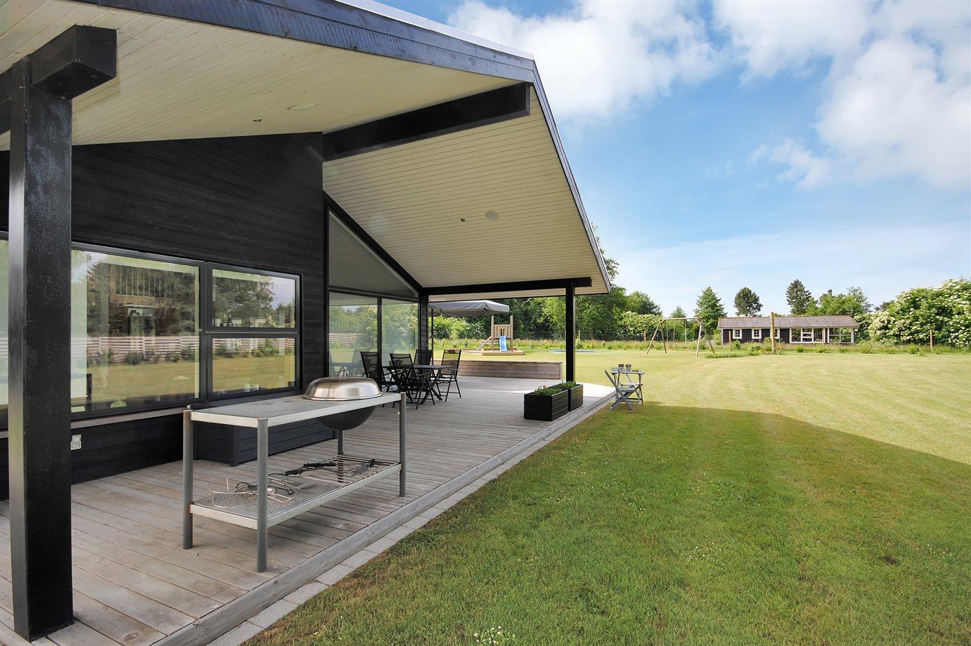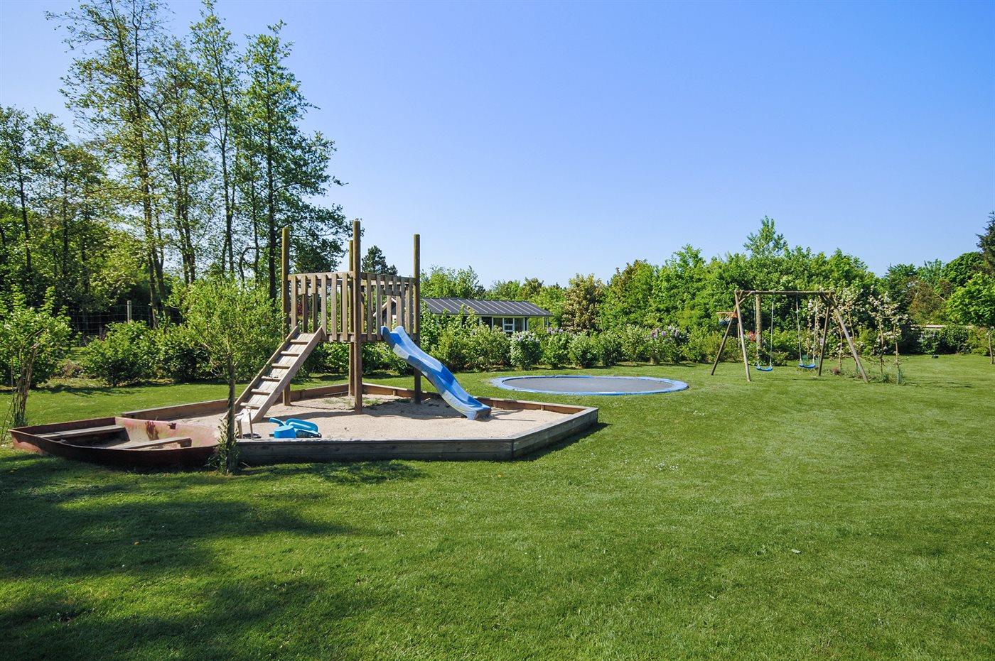 Ferieboligen er beliggende på en 3000 m² stor havegrund. Der er 45000 m til havet. Der er 600 m til fjorden. Nærmeste forretning er beliggende i en afstand af 6000 m. Der er en golfbane i en afstand af 14000 m. Til ferieboligen hører 80 m² terrasseareal. Desuden er der 30 m² overdækket terrasse. Gynge. Sandkasse. Trampolin. Legetårn. Rutchebane. Bålsted. Grill til rådighed. Der er installeret stik til opladning af elbil. Parkering ved ferieboligen.