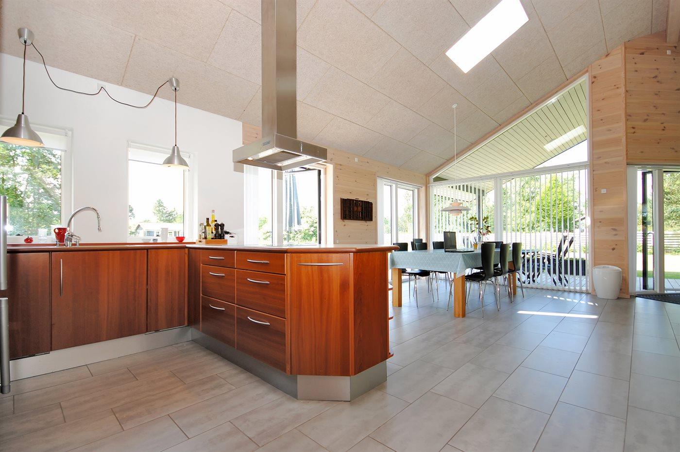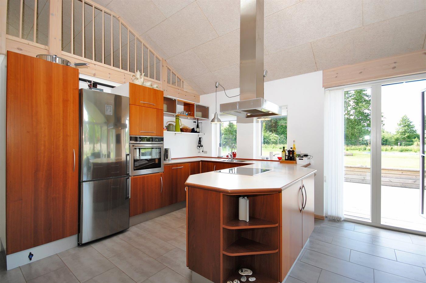 Køkkenet er udstyret med 1 køleskab. Der er 4 induktionskogeplader, varmluftovn, mikrobølgeovn samt opvaskemaskine.