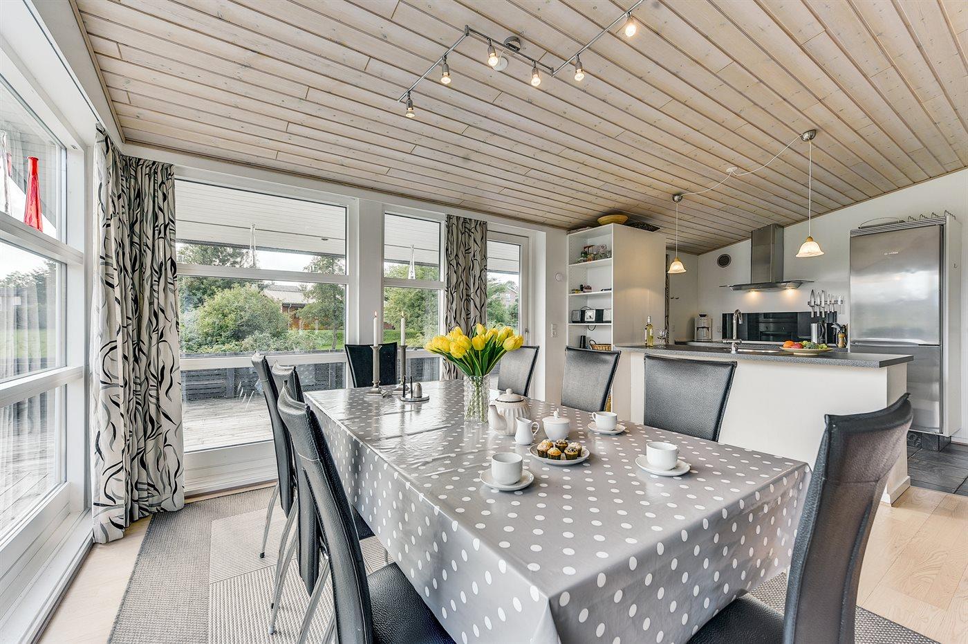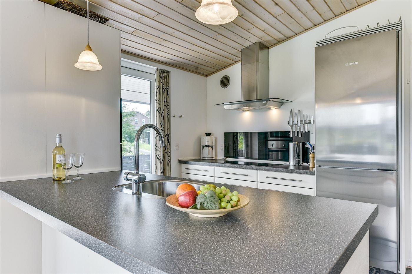 Køkkenet er udstyret med 1 køleskab. Der er 4 keramiske kogeplader, varmluftovn, mikrobølgeovn samt opvaskemaskine.