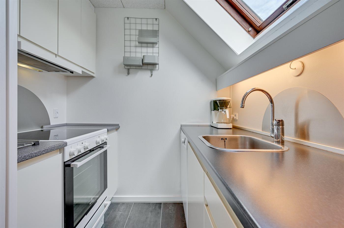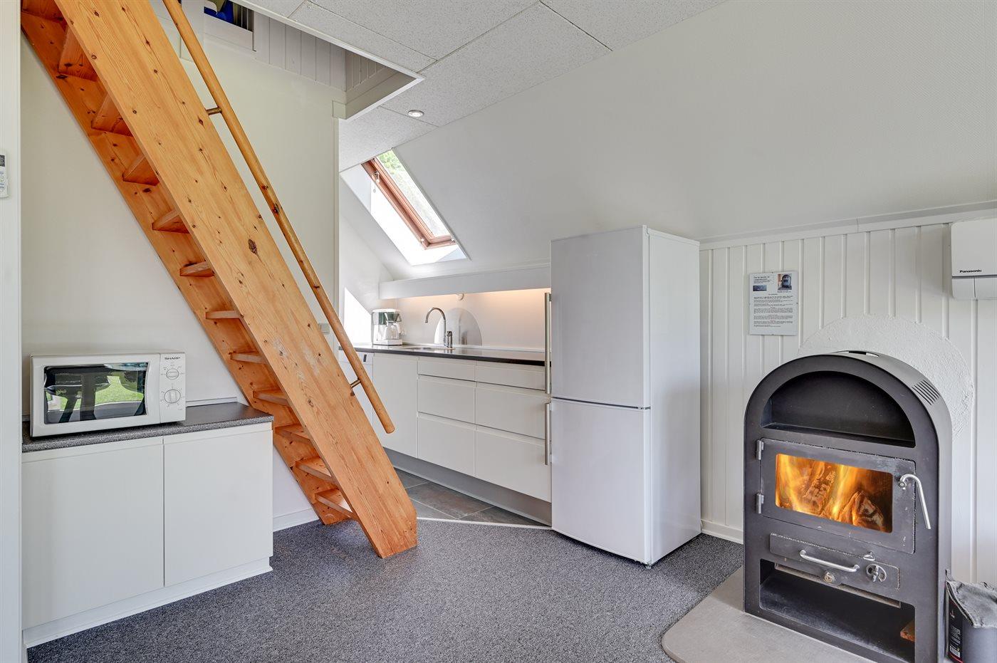 Køkkenet er udstyret med 1 køleskab. Der er 4 keramiske kogeplader, varmluftovn, mikrobølgeovn samt opvaskemaskine.