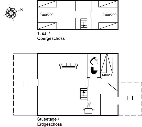 Der er i alt 3 soveværelser. Sovepladserne fordeler sig på: 2 sovepladser i dobbeltseng. 4 sovepladser i enkeltsenge.