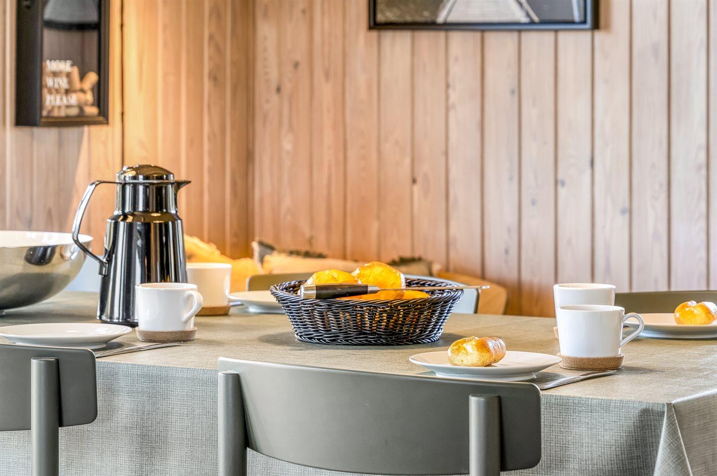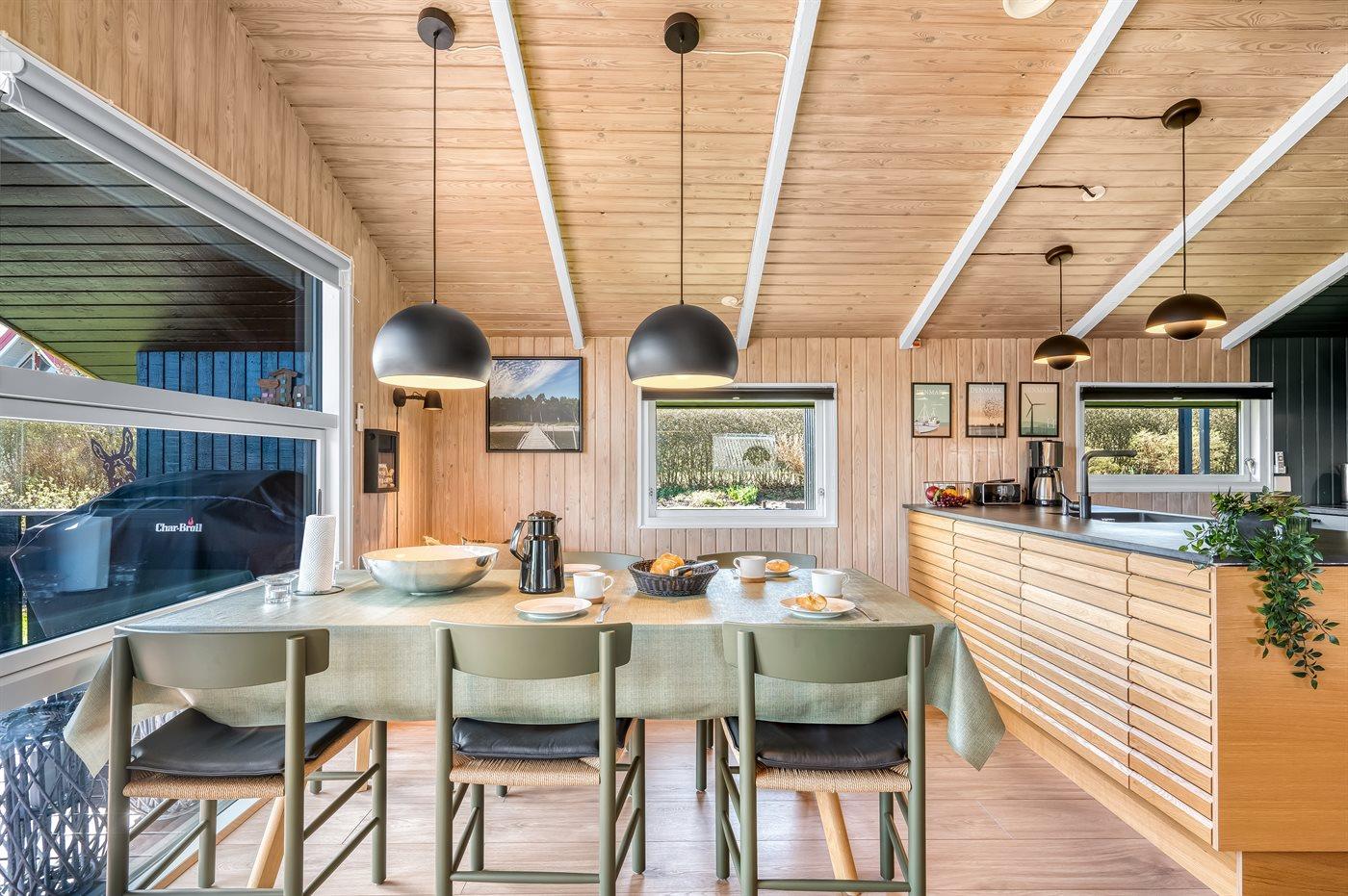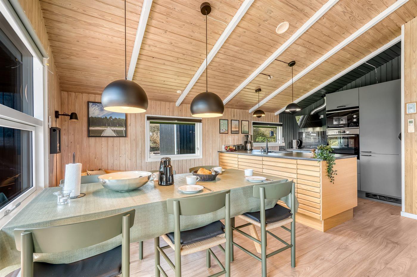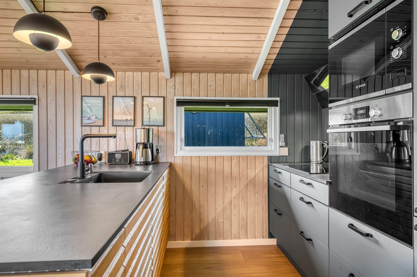 Køkkenet er udstyret med 1 køleskab. Der er 4 induktionskogeplader, varmluftovn, mikrobølgeovn samt opvaskemaskine.