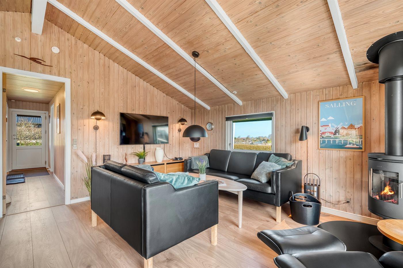 Lyst og indbydende sommerhus med skøn beliggenhed nær ved Limfjorden med udsigt over vandet. Sommerhuset er praktisk og moderne indrettet til et godt ferieophold, og i haven er der både mulighed for at lege og nyde ferien i fred og ro.