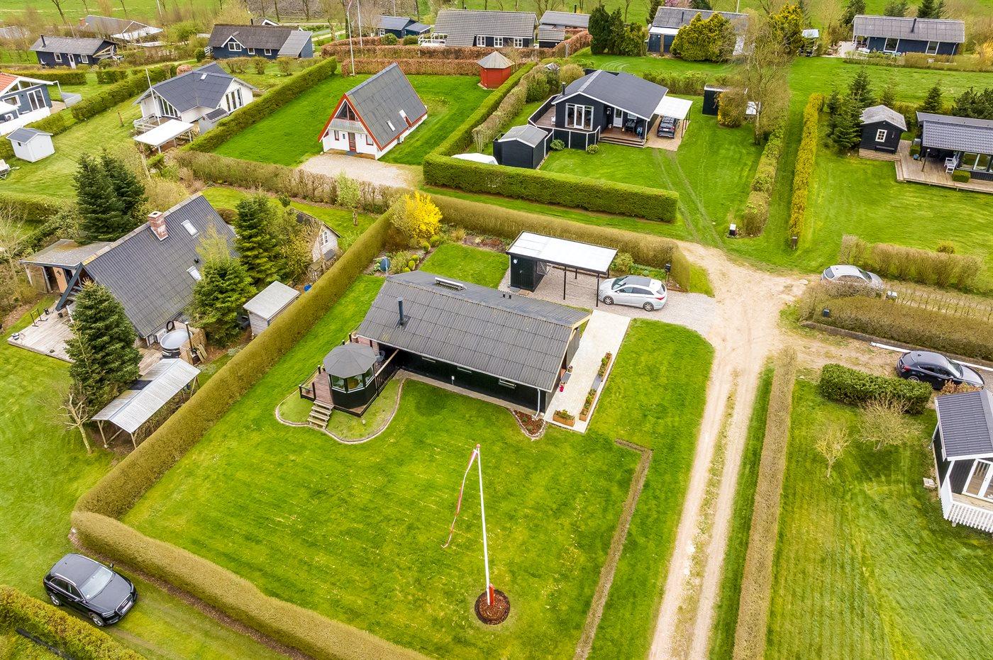 Ferieboligen er beliggende på en 800 m² stor naturgrund. Der er 350 m til fjorden. Nærmeste forretning er beliggende i en afstand af 3000 m. Der er en golfbane i en afstand af 18000 m. Til ferieboligen hører 25 m² terrasseareal. Desuden er der 15 m² overdækket terrasse. Fodboldmål. Grill til rådighed. Parkering ved ferieboligen.