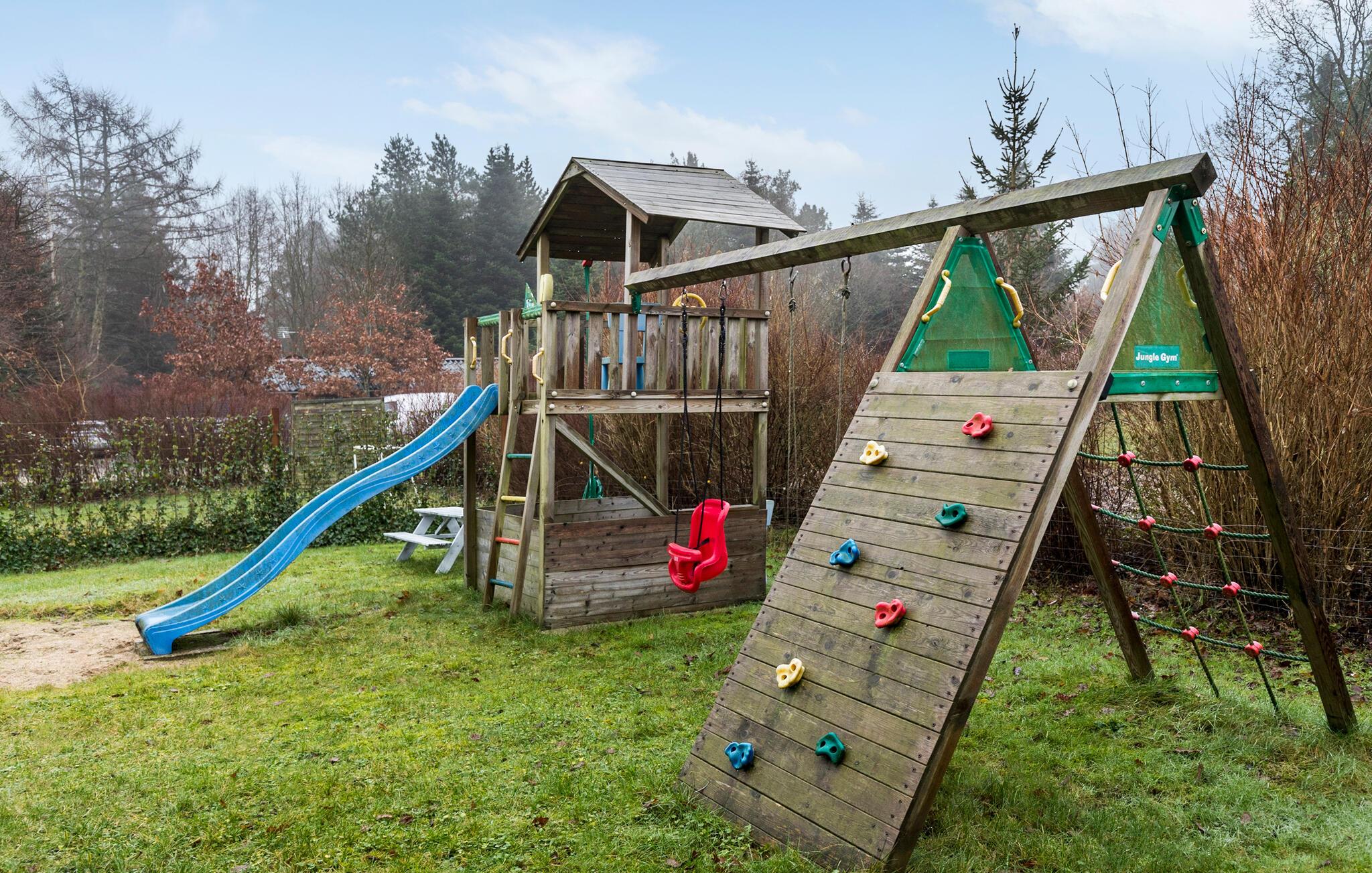 Lad jeres børn tilbringe mange timer udenfor i den friske luft, mens de leger på husets legeplads med rutsjebane og klatrevæg. Arranger grillaftener under åben himmel, eller nyd stemningsfulde øjeblikke med et glas vin ved bålfadet.