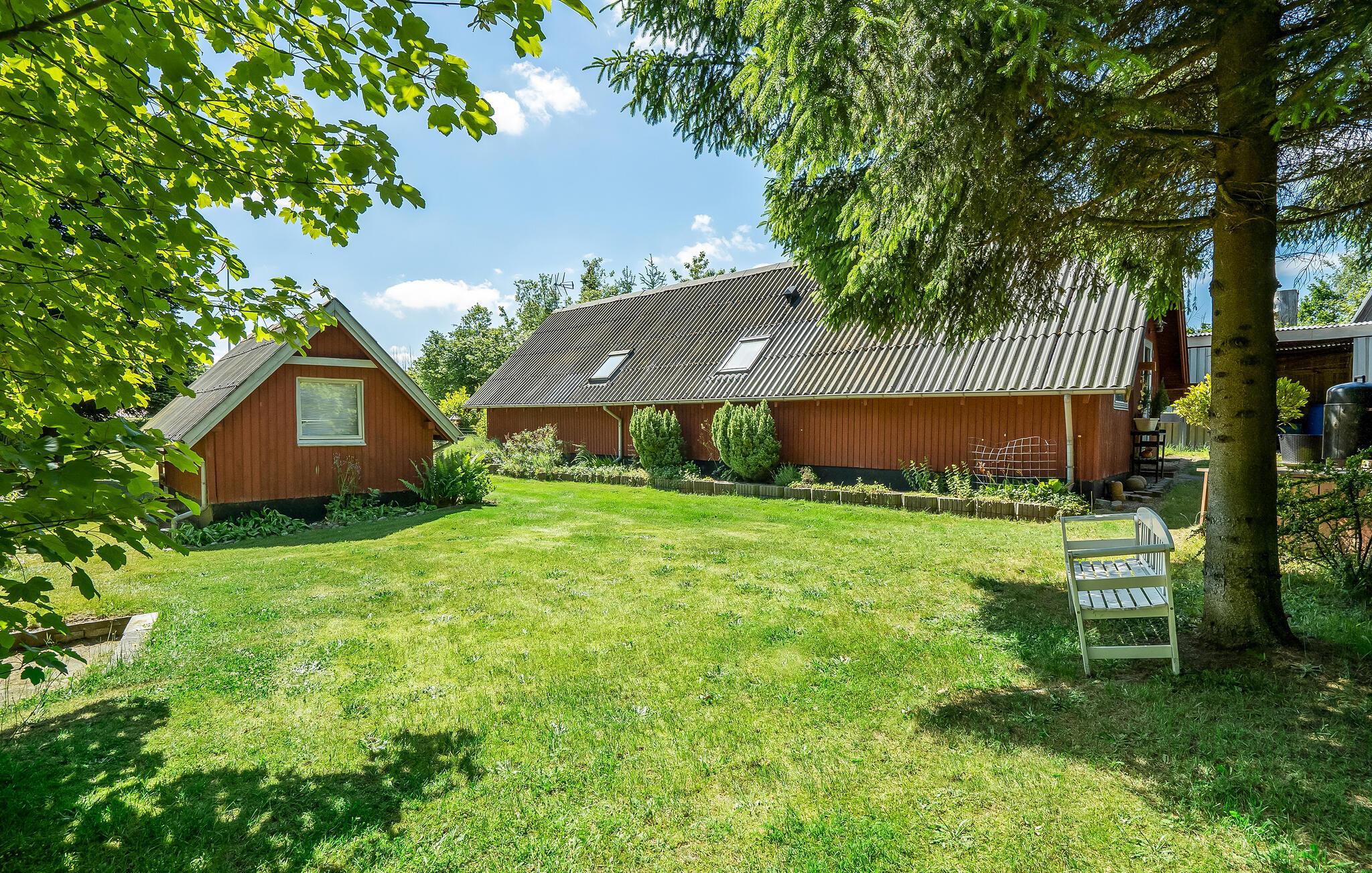 Den åbne grund omkring huset har masser af plads til leg, aktiviteter og afslapning. Nyd solen og de lange, lyse sommeraftener på terrassen og tilbered lækre måltider på grillen.