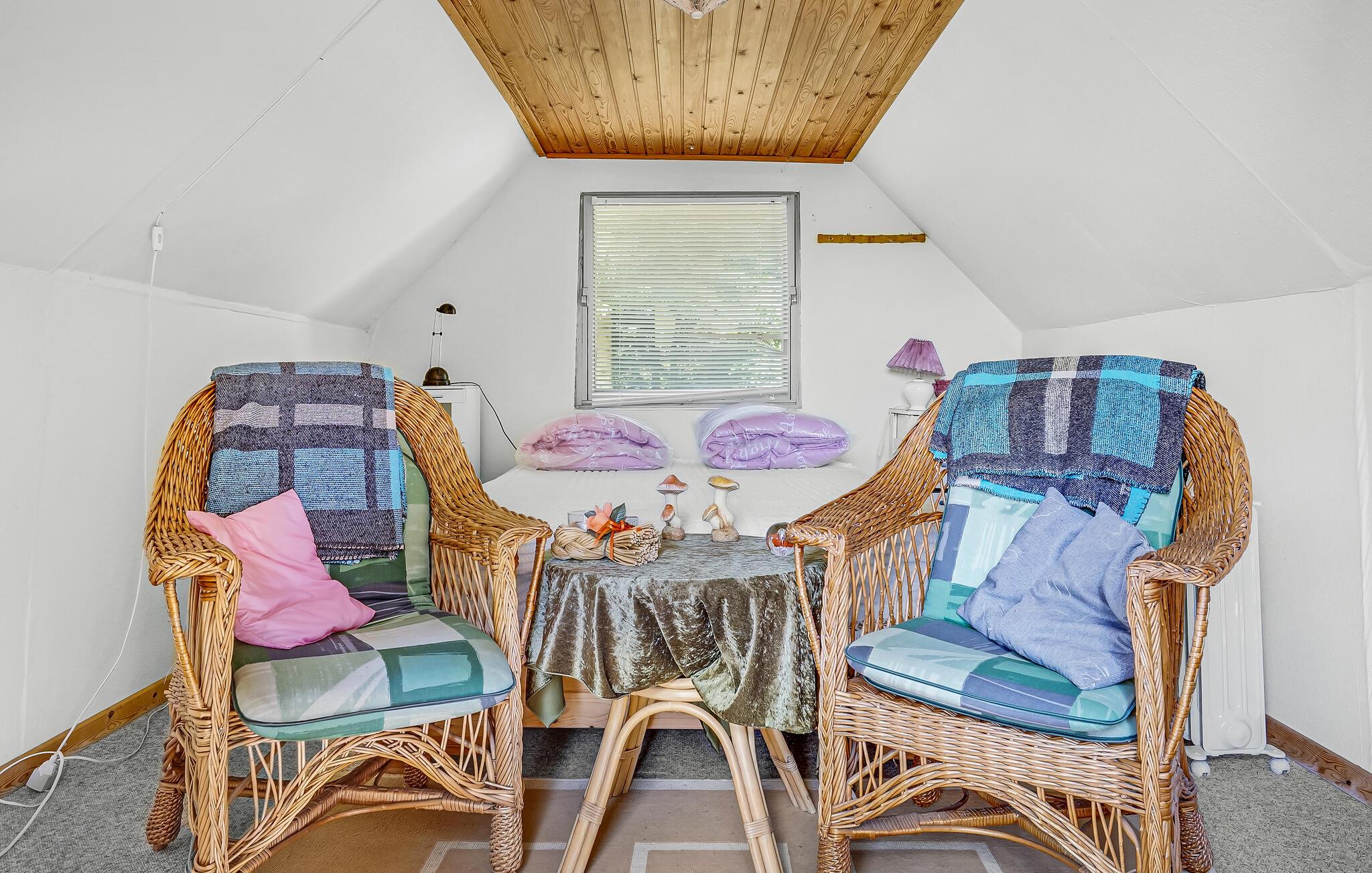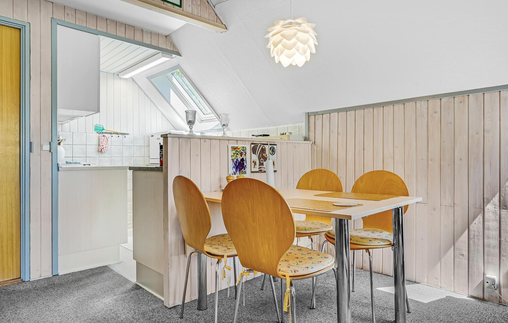 Det hyggelige hus tilbyder plads til fire personer, og to kæledyr er også velkomne. Se frem til hyggelige aftener i stuen, som takket være de store vinduer har et dejlig stort lysindfald og en god udsigt til de naturskønne omgivelser. Brændeovnen skaber en hyggelig atmosfære.