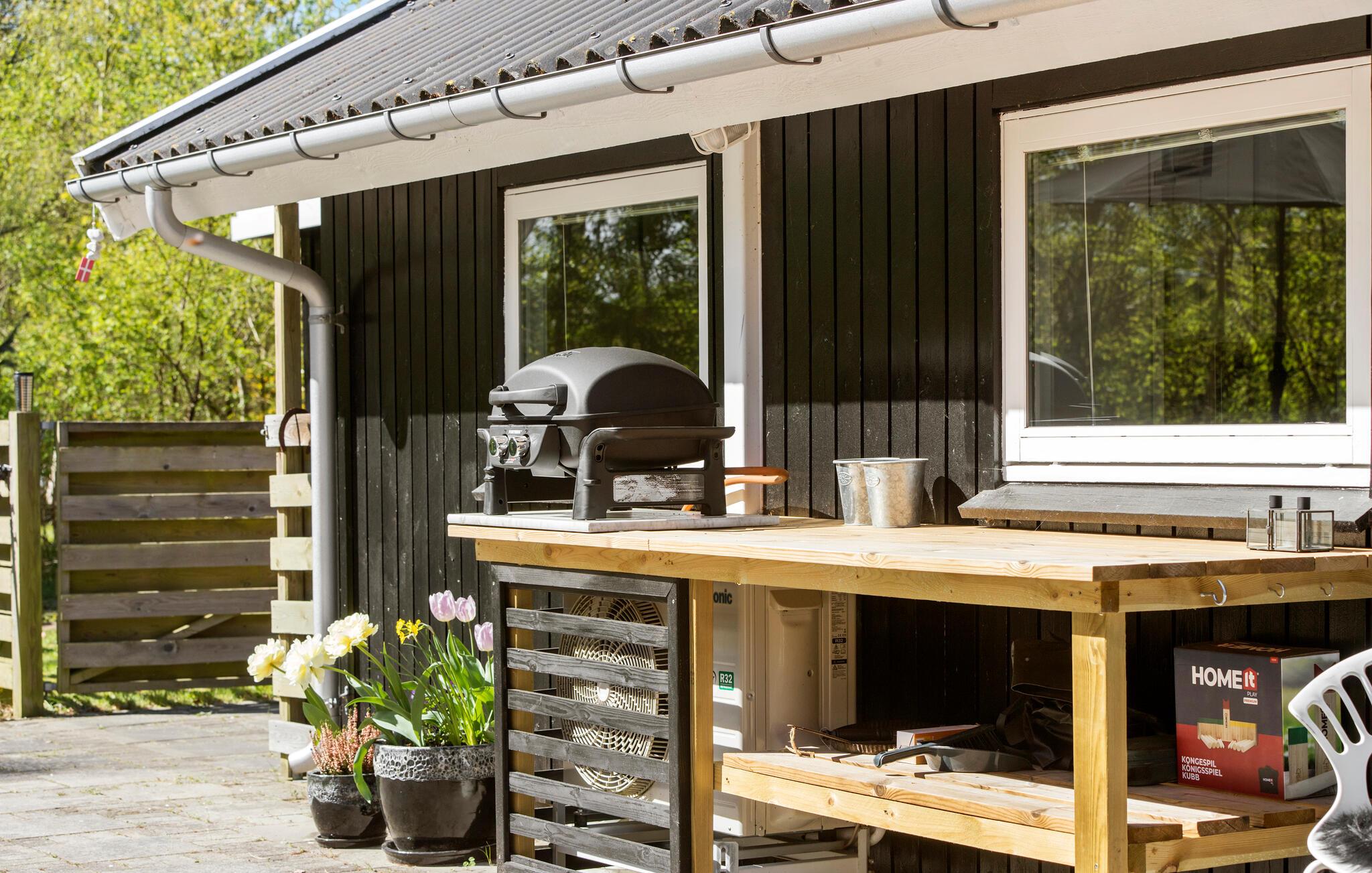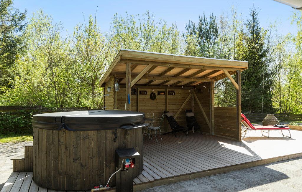 Hyggeligt sommerhus i Selkær Mølle med pejs, stor terrasse og spabad i smuk natur.