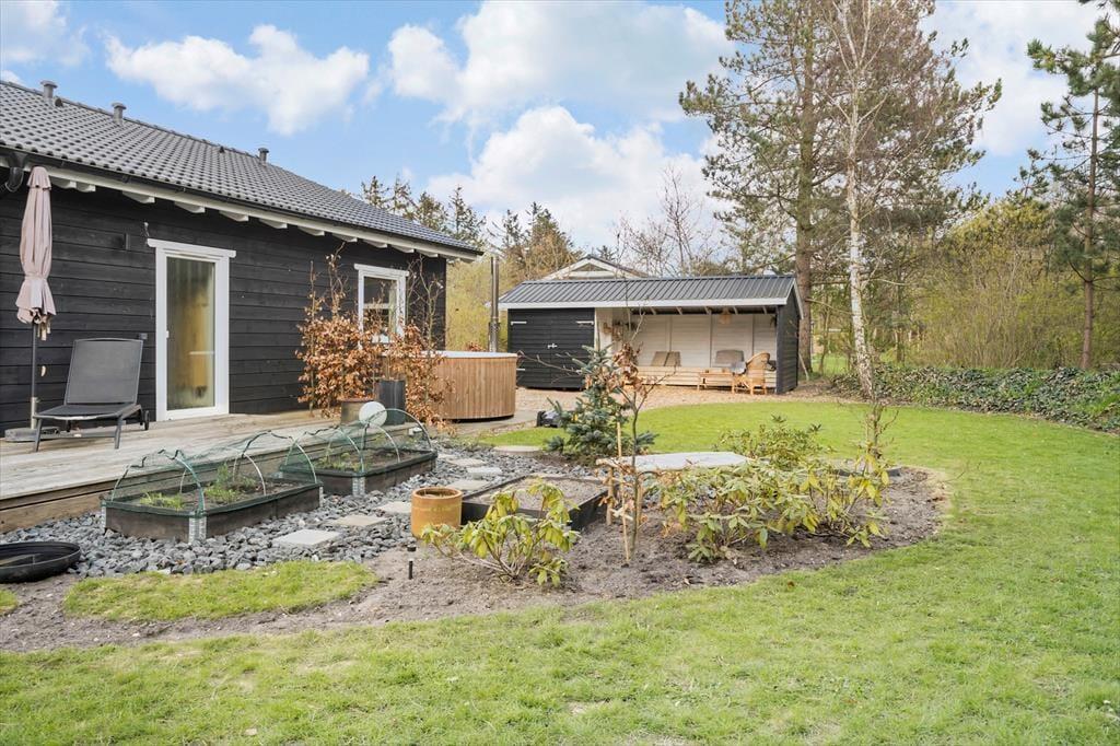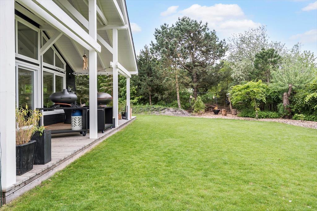 Den store have er en vidunderlig oase for børn og voksne. Ja, også for hunde, for grunden er nemlig lukket, så selv firebenede familiemedlemmer kan gå frit. De yngste feriegæster vil sikkert synes, at det er hyggeligt, at der er bålsted og en god græsplæne at lege på, mens den store, delvist overdækkede træterrasse kan værdsættes af alle aldersgrupper, når I vil grille eller lave pizzaer i den brændefyrede Morsø pizzaovn. I forlængelse af terrassen er der udebruser og vildmarksbad – sidstnævnte giver jer en perfekt afslutning på dagen, for der er ikke noget som et varmt bad i havens ugenerede, grønne omgivelser.