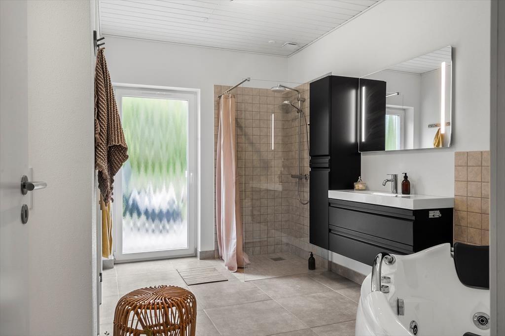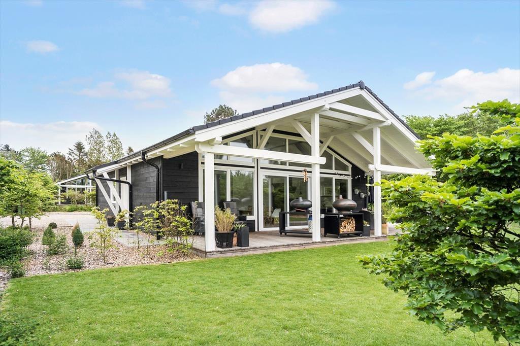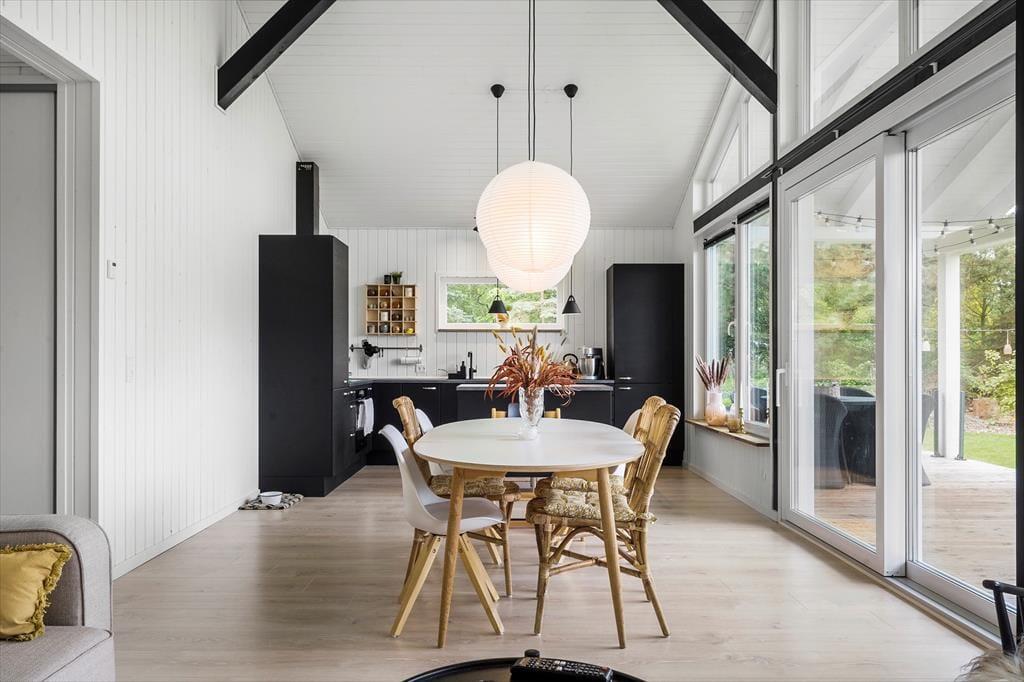 Det 120 m2 store sommerhus er ikke bare veludstyret, men har en lækker indretningsstil og en skøn atmosfære. Man kan straks føle sig hjemme i de hyggelige rum, der har hvidmalede trælister på væggene og møblement i naturmaterialer og flotte farvetoner. Planløsningen passer godt til seks personer, for i alt er her tre soveværelser, der alle er udstyret med dobbeltseng. I det højloftede opholdsrum kan I se frem til mange dejlige stunder, når I samles rundt om spisebordet eller slapper af i sofaområdet – og selv madlavningen kan blive et hyggeprojekt, når det foregår i et flot åbent køkken som dette. Også på badeværelst kan I se frem til at hygge jer, for det store rum er indrettet med spabad og sauna. Saunalyset kan endda skifte farve, så I kan skabe præcis den afslappede stemning, I ønsker jer. Som en sidste rar detalje er det værd at nævne, at forbrug er inkluderet i prisen.