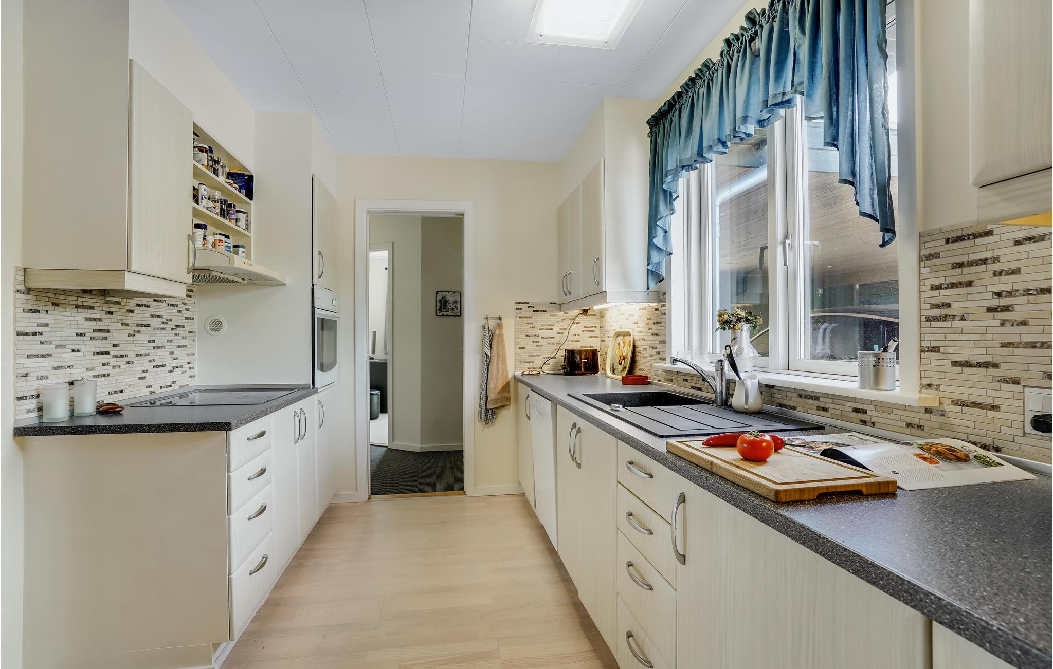 Velkommen indenfor i dette dejlige feriehus med masser af plads og mange, gode faciliteter. Den store stue lægger op til mange hyggelige timer sammen, hvad enten I er til brætspil, hygge foran pejsen eller afslapning i sofaen. Tilbered jeres yndlingsretter sammen i køkkenet. Det amerikanske køleskab har masser af plads og gør det nemt og bekvemt at nyde en kold drink. På den rummelige terrasse kan I spise sammen i det fri eller slappe af på liggestolene. Den store grund lægger op til sjov og leg for store og små på græsplænen.